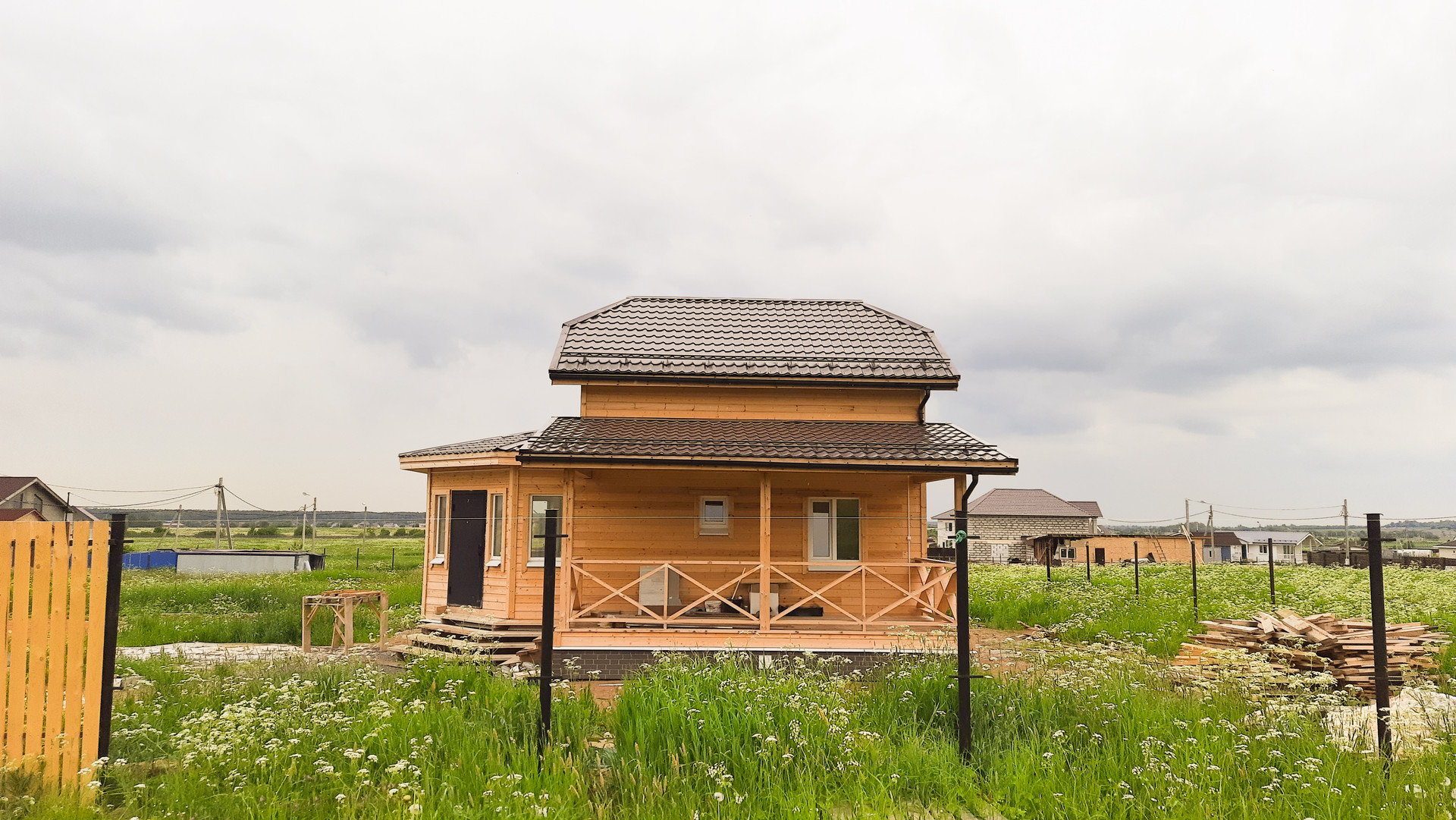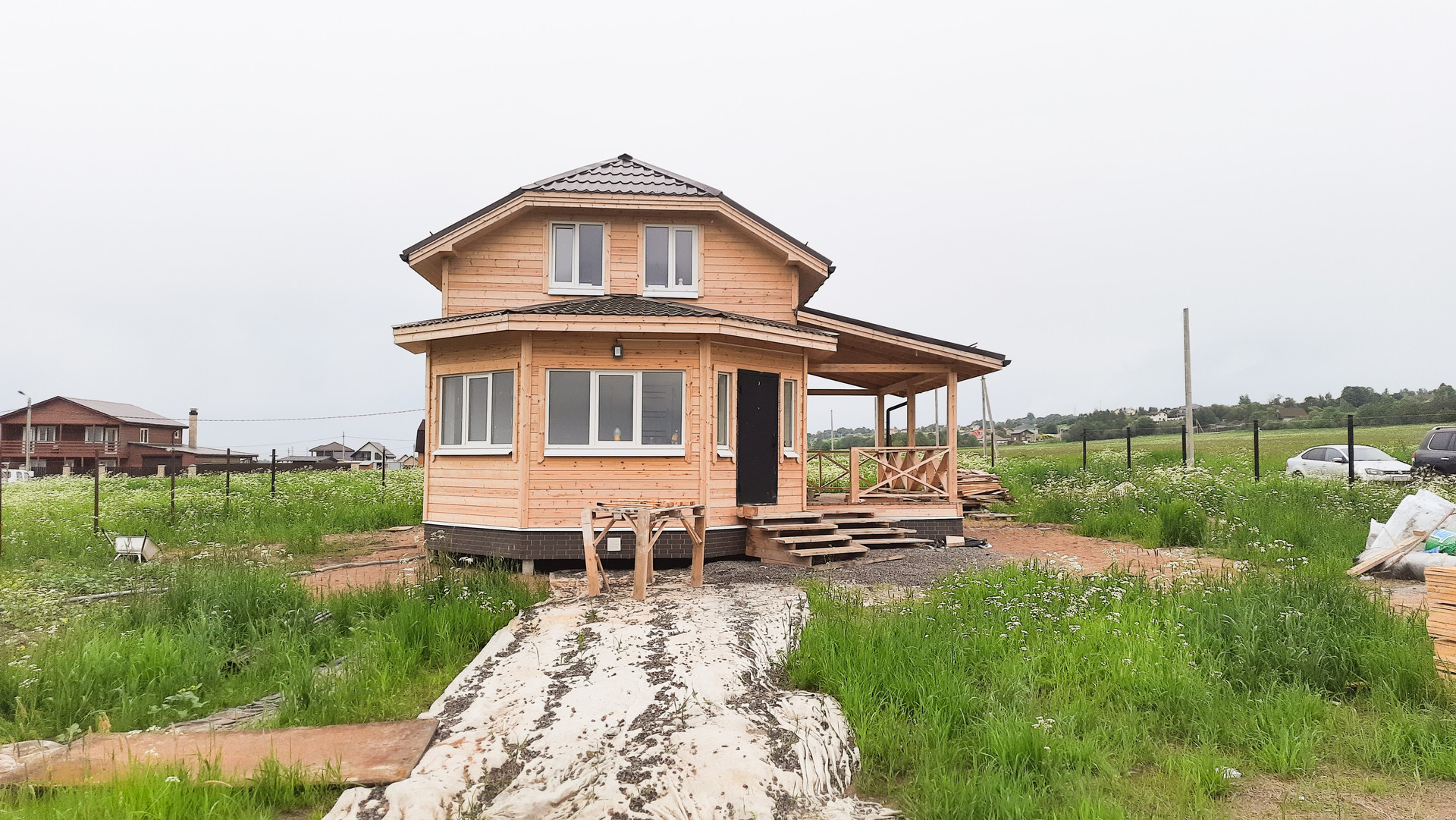 Продаётся каркасный, теплый дом. В стоимость дома включены работы: по завершению внутренней отделки с/у плиткой, покраски стен, устранению мелких недоделок, установке забора по всему периметру, а также автоматических ворот. Будет подготовлена площадка для стоянки автомобиля.