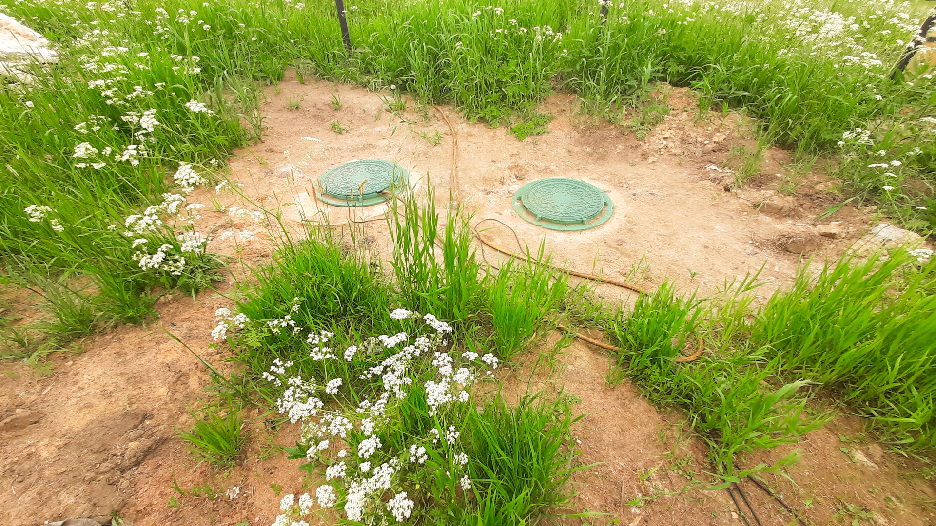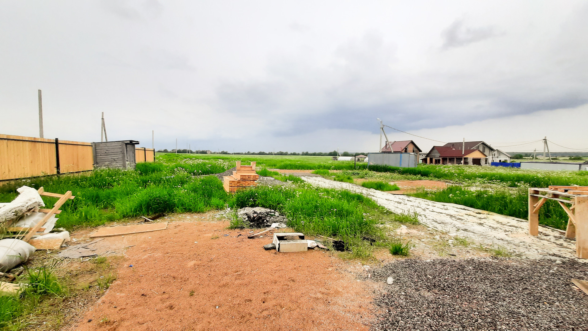 Участок площадью 11 соток. Сухой, песчаный грунт. Очень удачное расположение: угловой, соседи только с двух сторон, напротив - поле