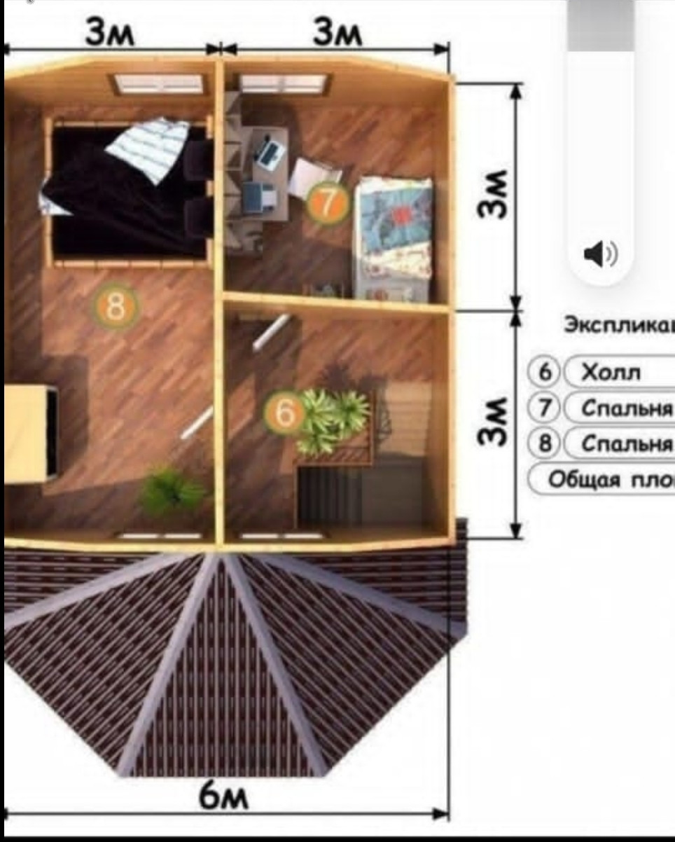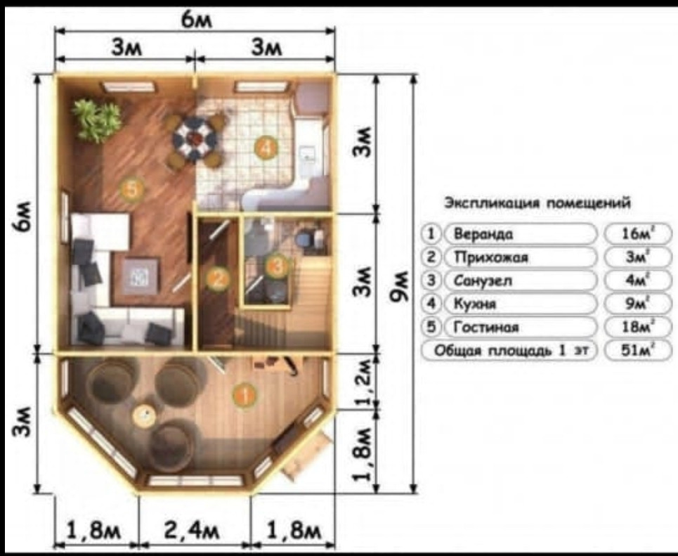 Общая площадь дома 120 кв.м. 1 этаж: веранда, прихожая, кухня-гостиная, санузел, + терраса 18кв.м; 2 этаж: 2 спальни.