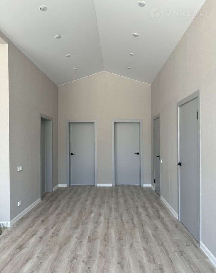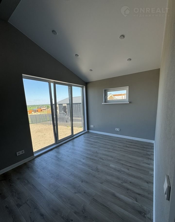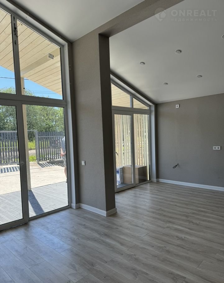 - Внутренняя отделка: стены - обои под покраску, пол в комнатах - ламинат 32 класса, санузел и тех помещение кафель, керамогранит, потолок натяжной матовый, точечные светильники, витражное остекление с выходом на террасу и во двор.