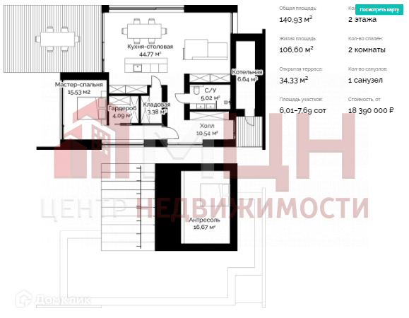 Общая площадь 140.9 м2