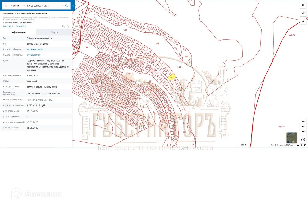 - Кадастровый номер: 69: 15: 0000018: 1471. Номер на ГП 62.