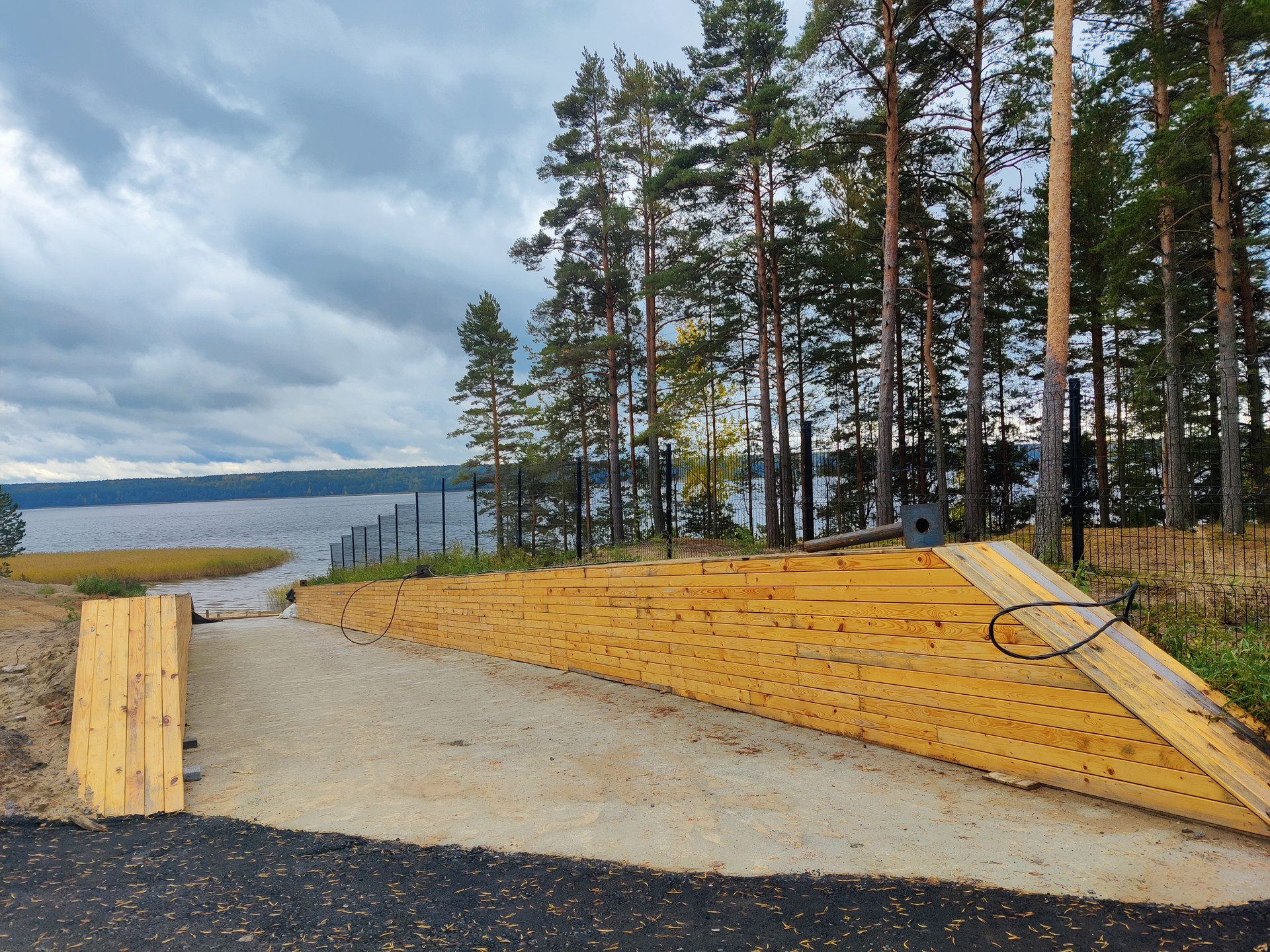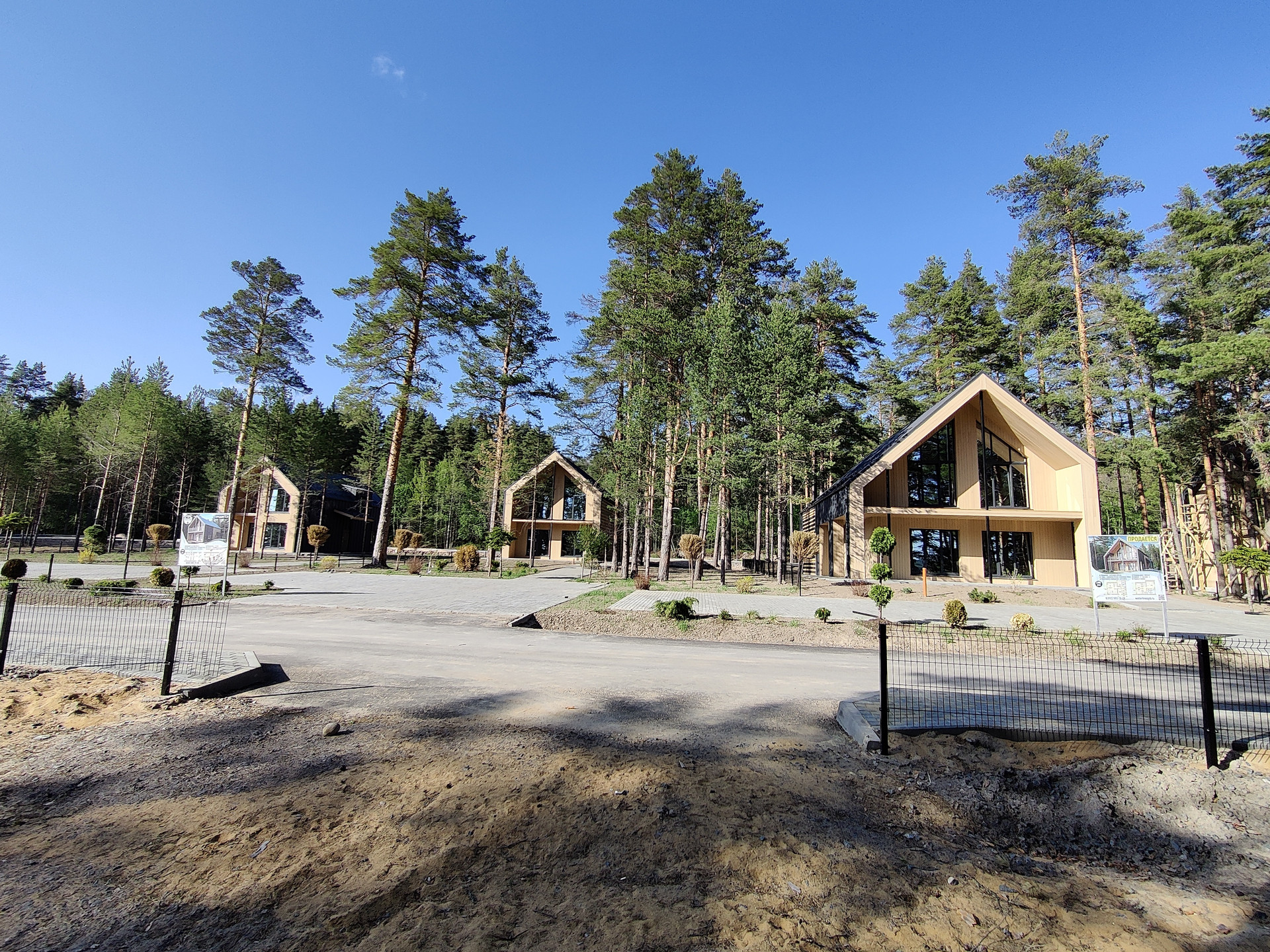 Коттеджный поселок рассчитан всего на 34 домовладения. Застройщиком выполняются работы по асфальтированию дороги, освещению, забору по периметру, устройству въездной группы с охраной, которая осуществляется круглосуточно. Выделено место для комфортного спуска лодок, ведутся работы по устройству общего пирса и пляжа.