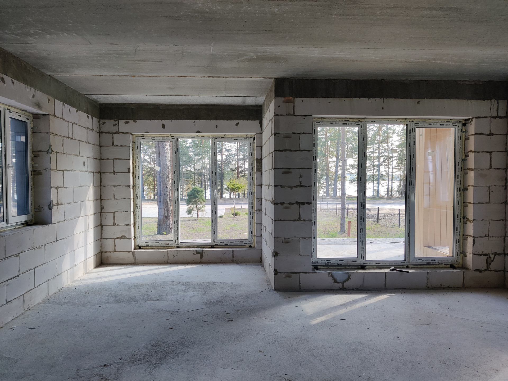 Коттедж построен с использованием современных технологий. Возведены перегородки внутренних помещений, выполнено остекление, установлена строительная лестница. Выполнение чистовой отделки коттеджа и заезд для проживания может быть реализован уже в этом летнем сезоне.