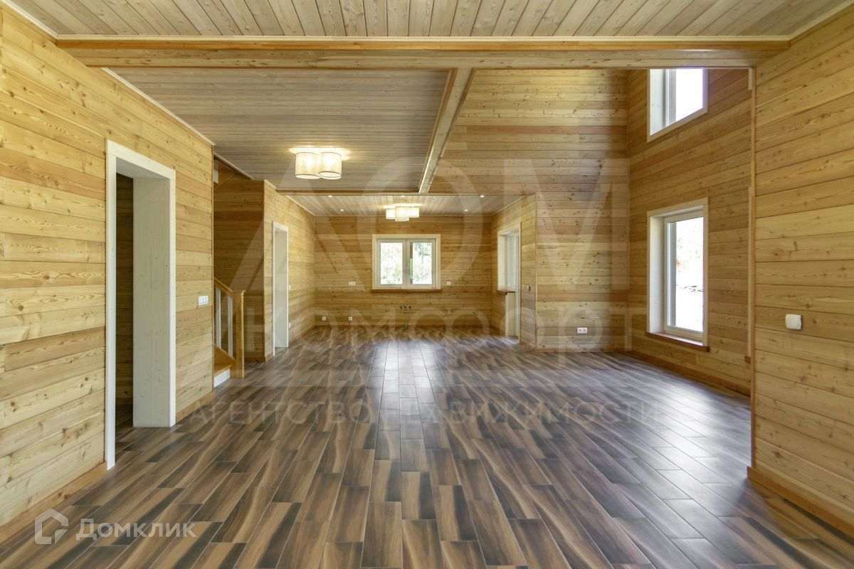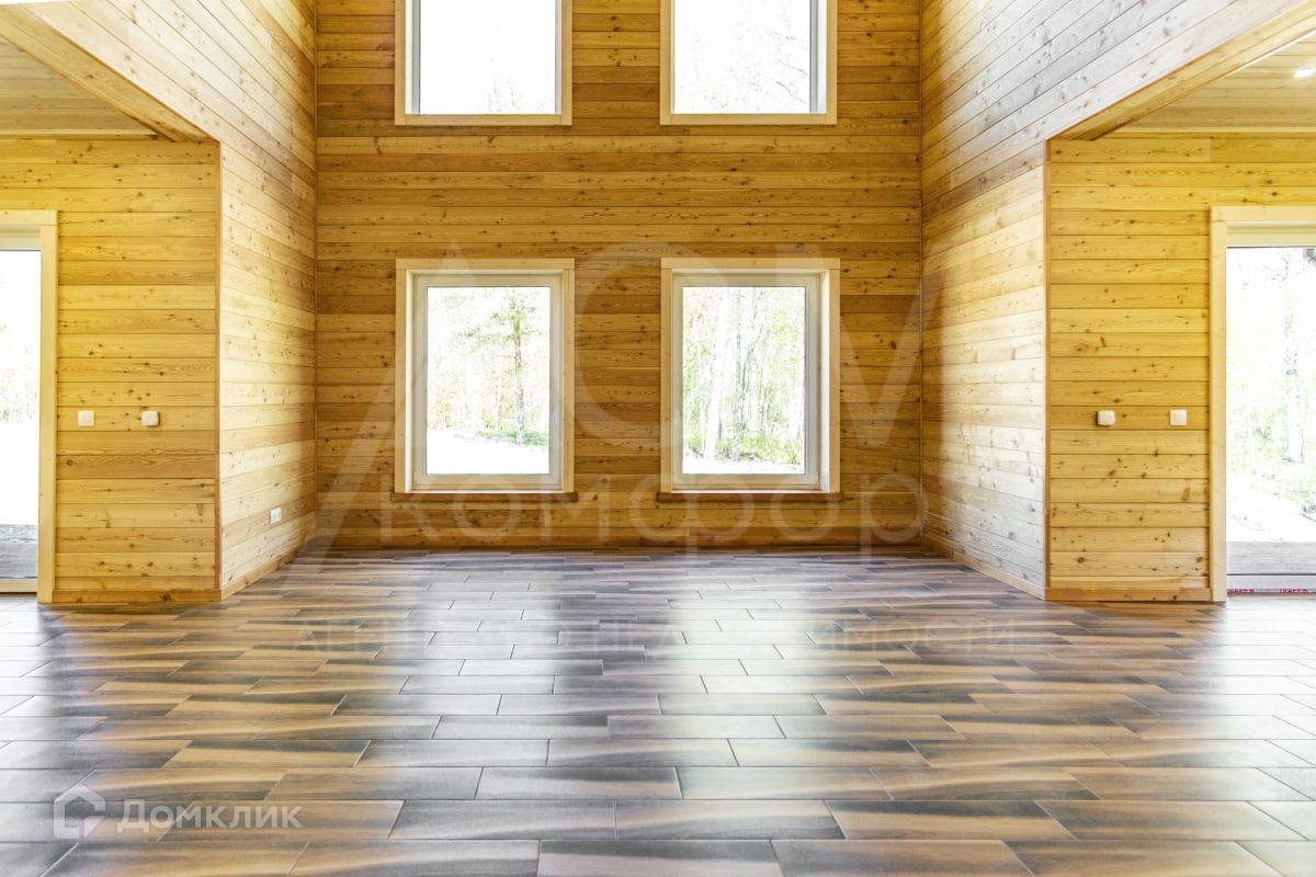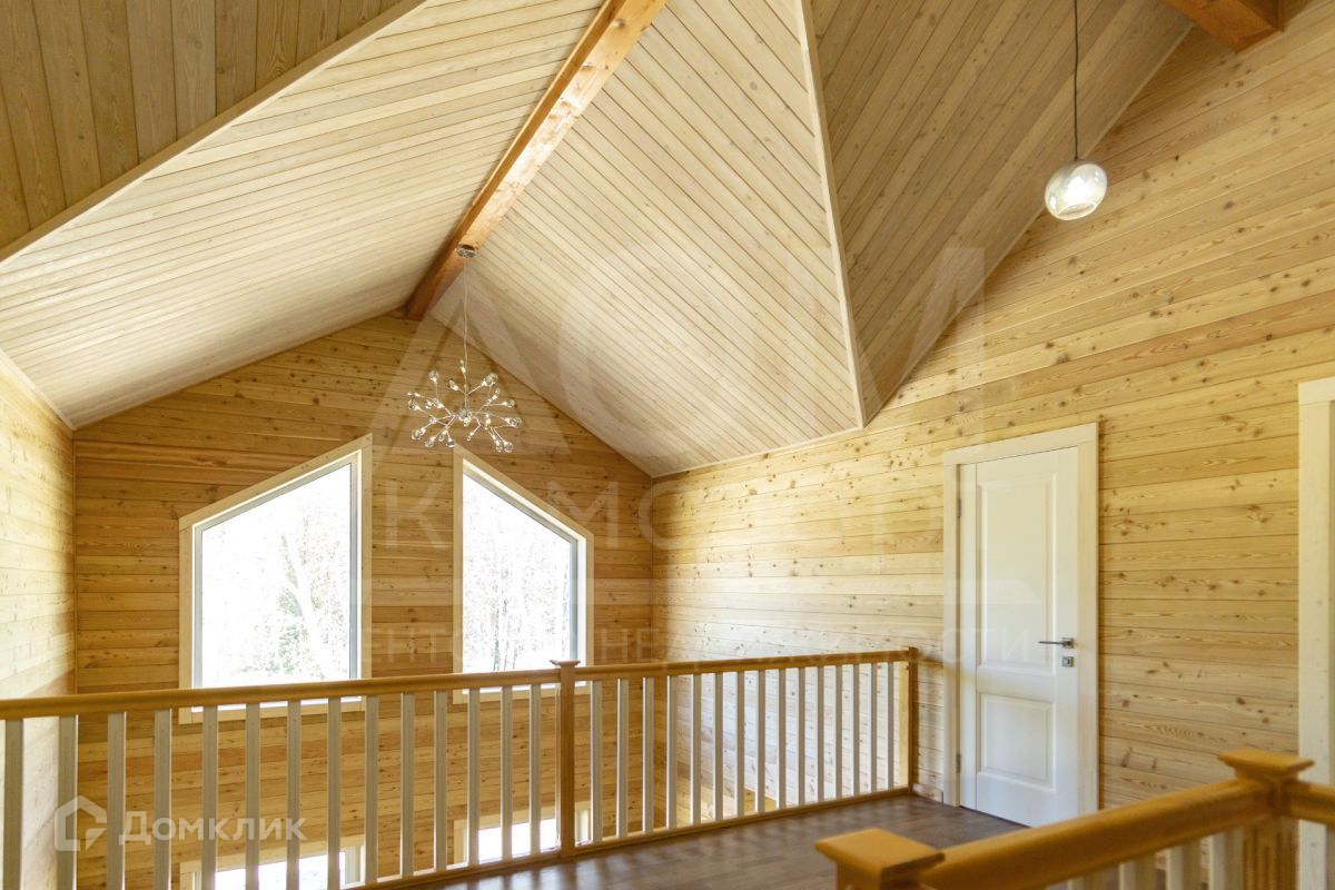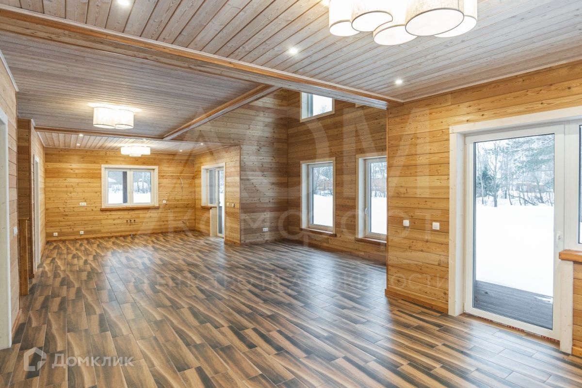Из просторной кухни-гостиной с панорамным остеклением и вторым светом открывается вид на лес. Четыре спальни легко разместят большую семью. Два санузла.