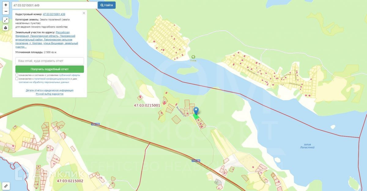 Кадастровый номер участка: 47:03:0215001:439