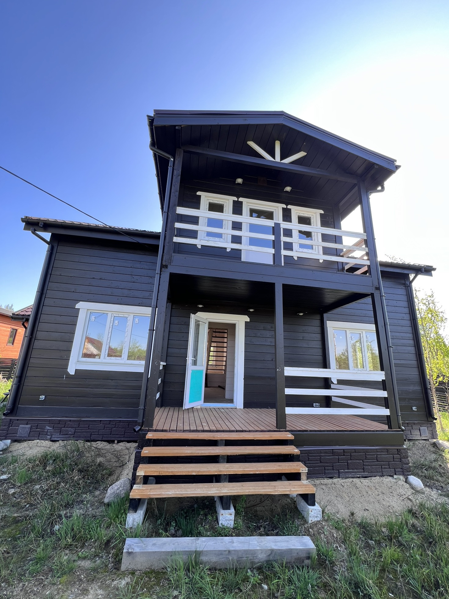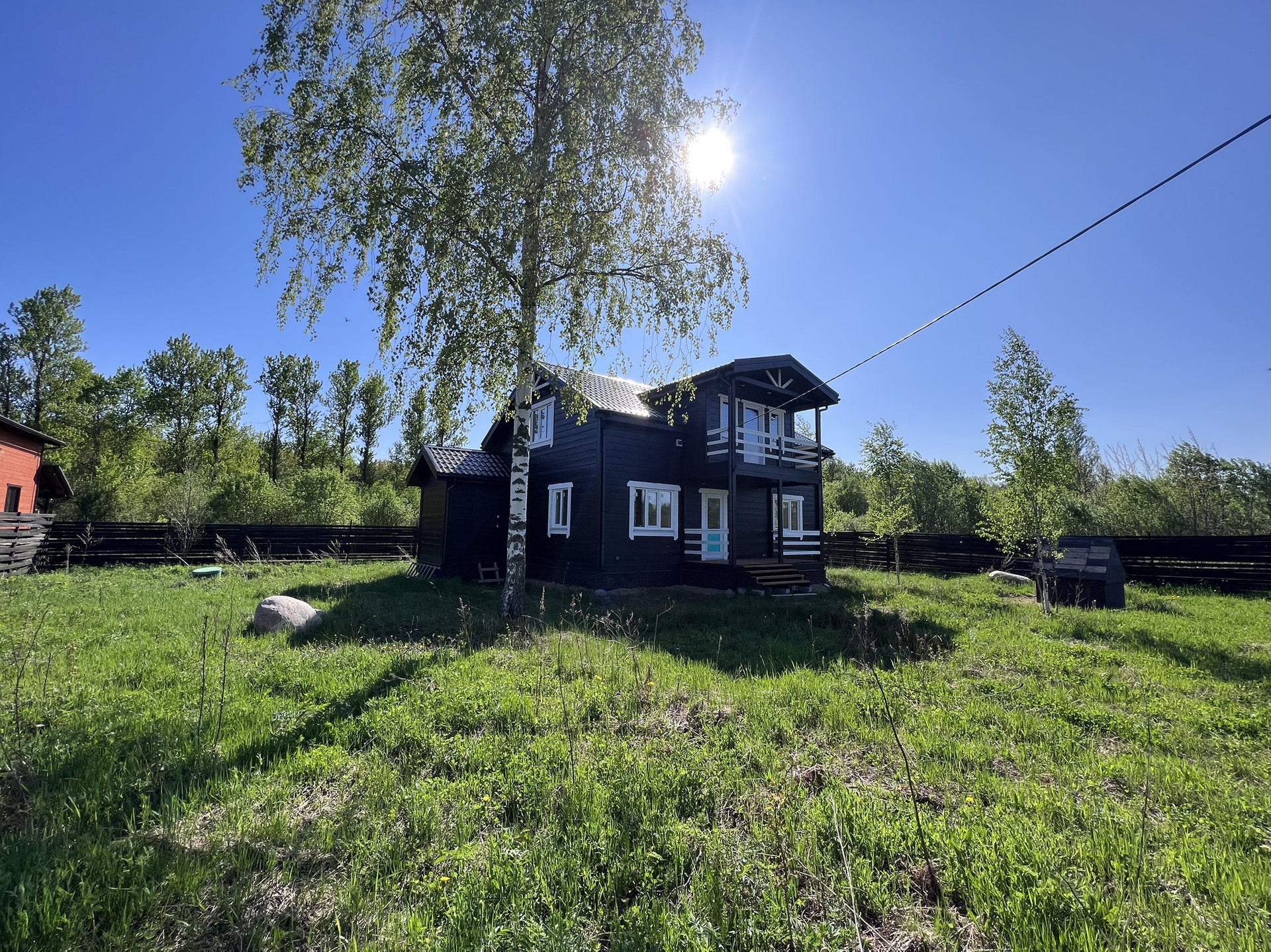 Продается участок с новым, только построечным домом для круглогодичного проживания. Двухэтажный каркасный дом 125 кв.м. Электричество и отопление есть (водяное и электрическое) Вода заведена ,трубы сделаны ,все выведено под раковину ,туалет ,стиралку ,мойку и т.д. Есть колодец. Канализация септик тоже сделана и через год газ должны провести газ. Установлены стеклопакеты и двери. Соседей нет . Рядом есть поляна . Один взрослый собственник. Посёлок охраняемый. Документы готовы. До Санкт-Петербурга ехать 30 мин. До Всеволожска ехать 5 минут.  Возможно обмен на квартиру, предлагайте, обсудим.
