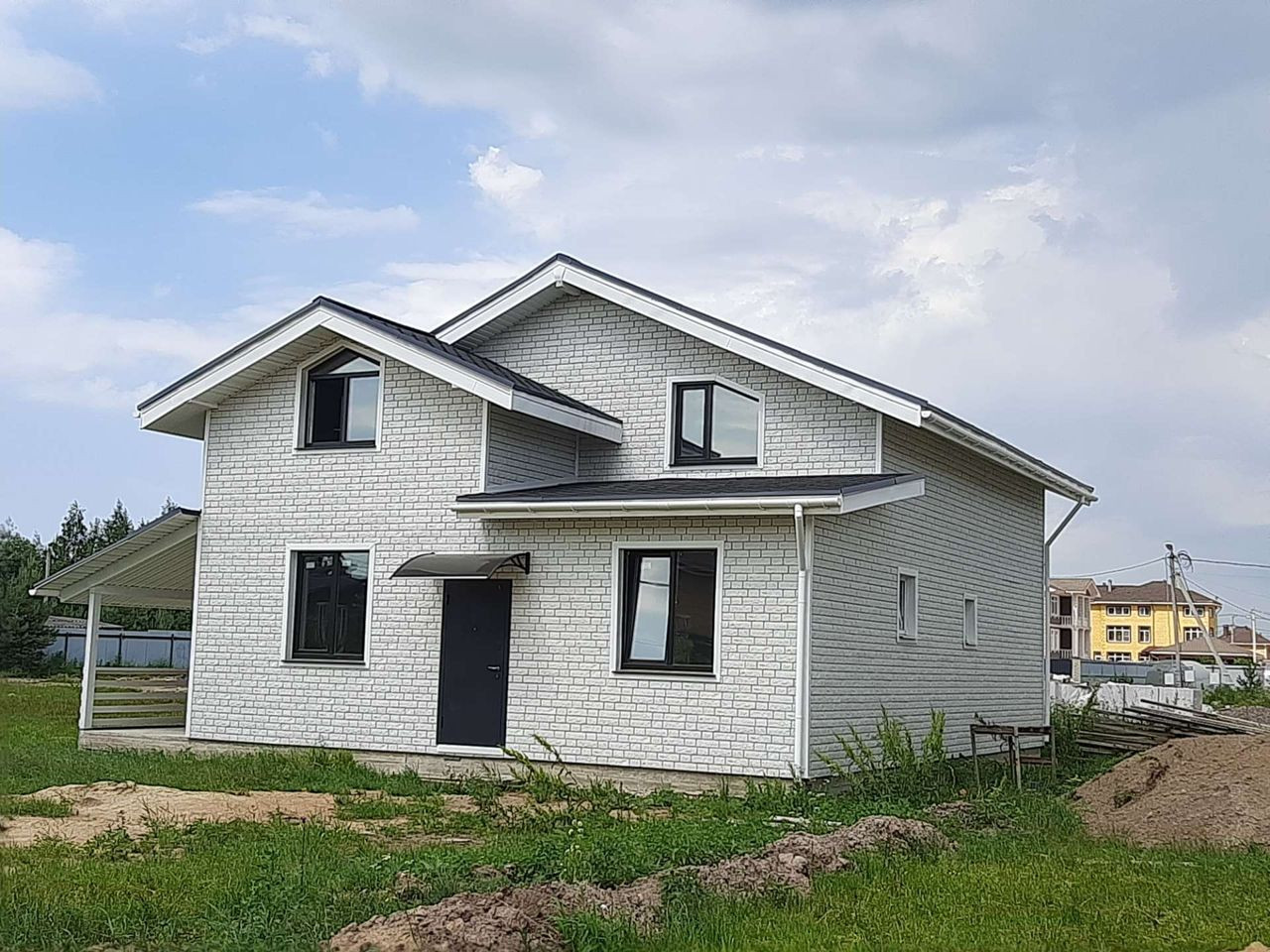 Мягкая кровля DОСКЕ. В доме расположены 4 спальни, два санузла,две гардеробные,котельная и большая кухня гостинная с выходом на террасу. Есть вариант жёлтого дома.