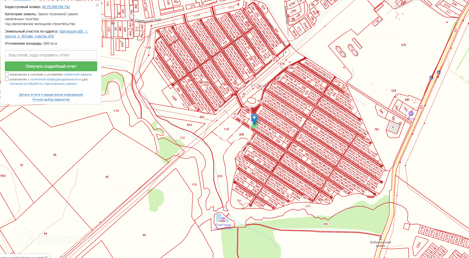 Кадастровый номер участка: 40:25:000160:742