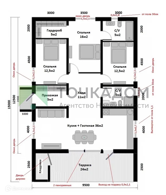 — Терраса 24 кв.м.