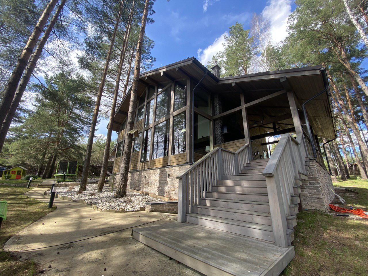 Продается 2 этажный фахверковый дом в поселке Сосны на красивейшем участке 42 сотки  с полноразмерными соснами. Площадь дома 210 м2. Дом построен по фахверково-каркасной технологии. Фундамент ленточный с полноценным подвалом (25 м2). В доме есть просторная кухня гостиная (75 м2), 4 изолированные спальни, 3 с/у, каменный камин, второй свет в гостиной и кухне, панорамное освещение и крытая терраса с зоной для барбекю (40 м2). Высота потолков 3 метра, высота 2-го света - 6,5 метров. Дом продается со встроенной кухней и техникой. В доме хороший ремонт и есть все коммуникации: свет, магистральный газ, центральный водопровод, канализация, высокоскоростной интернет. Вокруг дома организован 2 контурный дренаж. Прекрасный дом в сосновом лесу будет гордостью семьи. Участок имеет небольшой уклон, что обеспечивает сход талых вод и участок остается всегда сухой. Также расположение дома на небольшой возвышенности обеспечивает шикарные виды из окон. Участок огорожен деревянным штакетником. На участке проложены дорожки с уличным освещением, устроен газон с системой автополива, посажены плодовые и декоративные кустарники, есть парковочная площадка для 4 автомобилей. Участок находится в лесной зоне поселка Сосны/Родники. Дом расположен в тупиковом проезде. Поселок охраняемый, с развитой инфраструктурой. Река Ока в 5 км, ж/д станция Тарусская в 2 км (1,5 часа до Курского вокзала). Дом подойдет как для постоянного проживания с пропиской, так и для периодического отдыха.