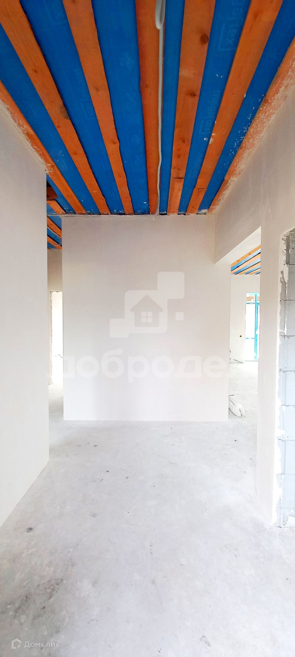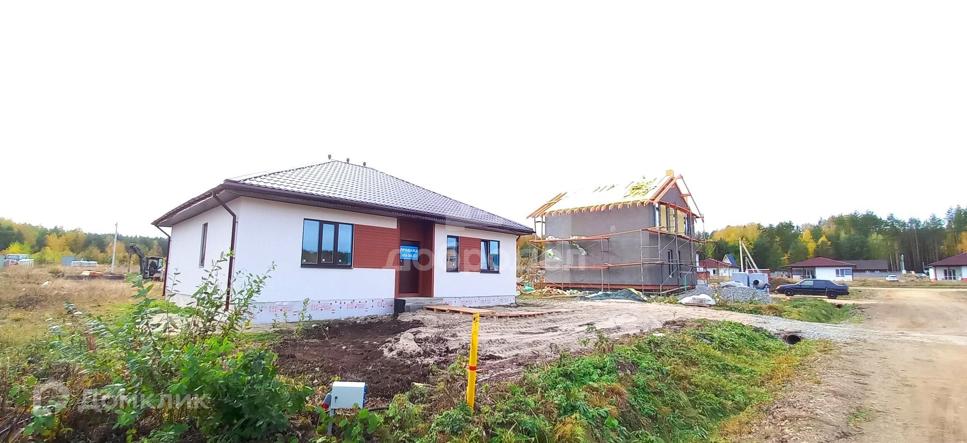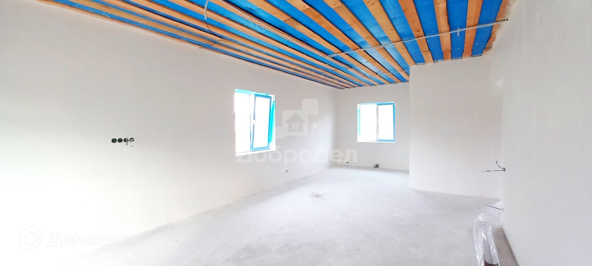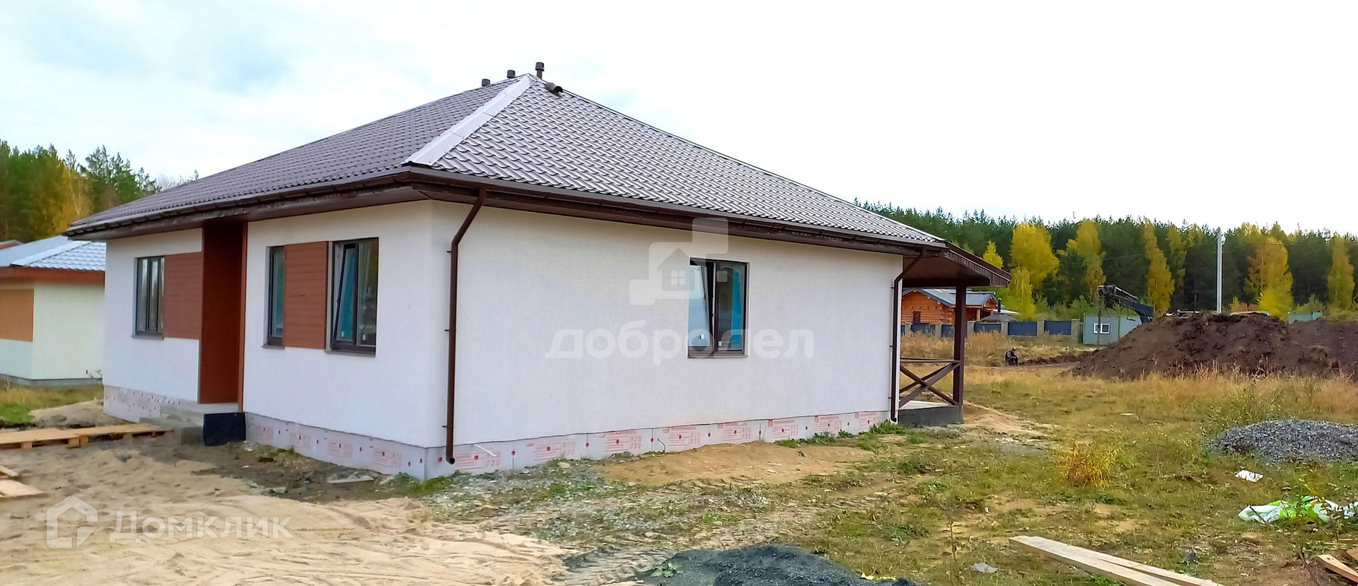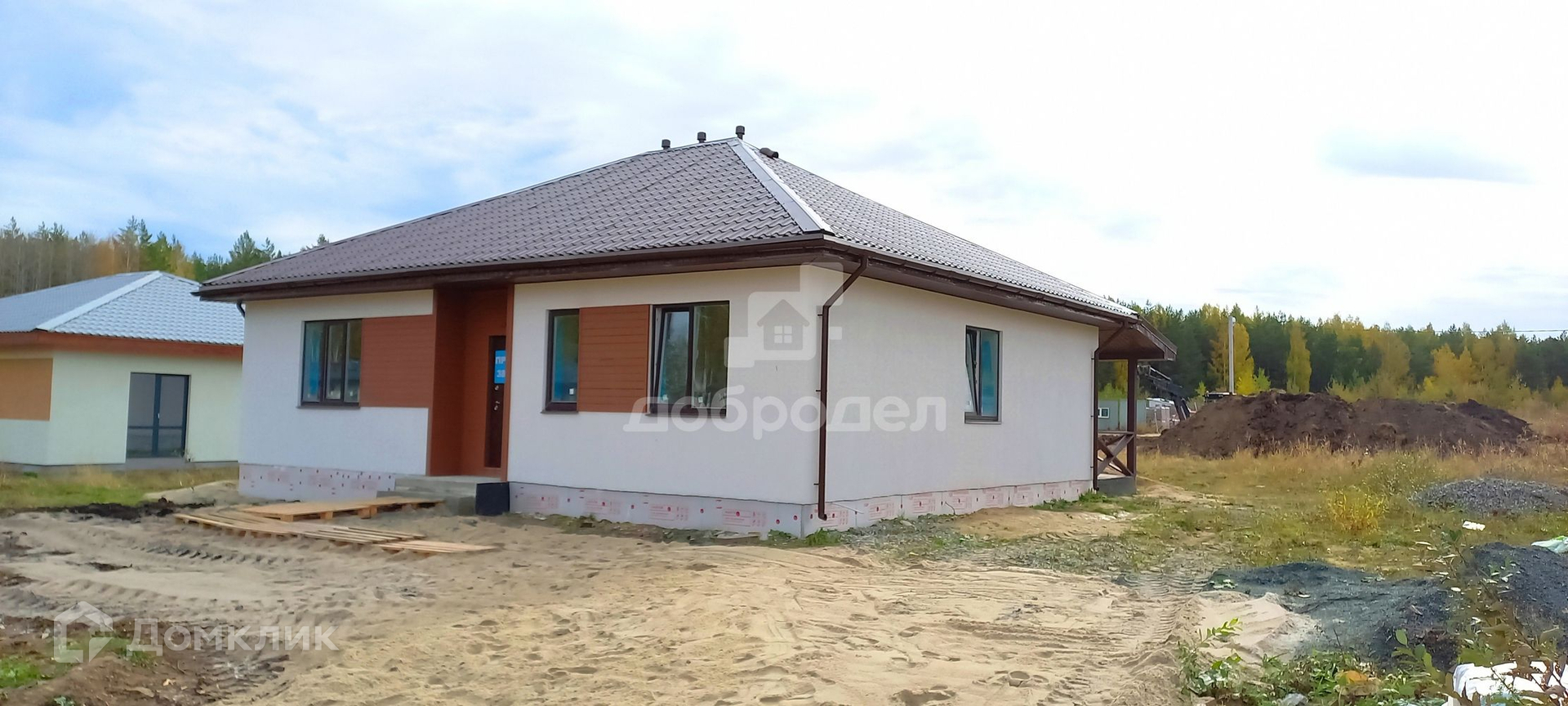 2022 года постройки, строился в тёплое время года. Фундамент: свайно-ленточный + монолитная плита. Материал стен: газобетонный блок + базальтовый утеплитель + декоративная штукатурка + армопояс; гидроизоляция и пароизоляция по технологии. Крыша: четырёхскатная из металлочерепица, кровельные свесы подшиты софитами, выполнена водосточная система.