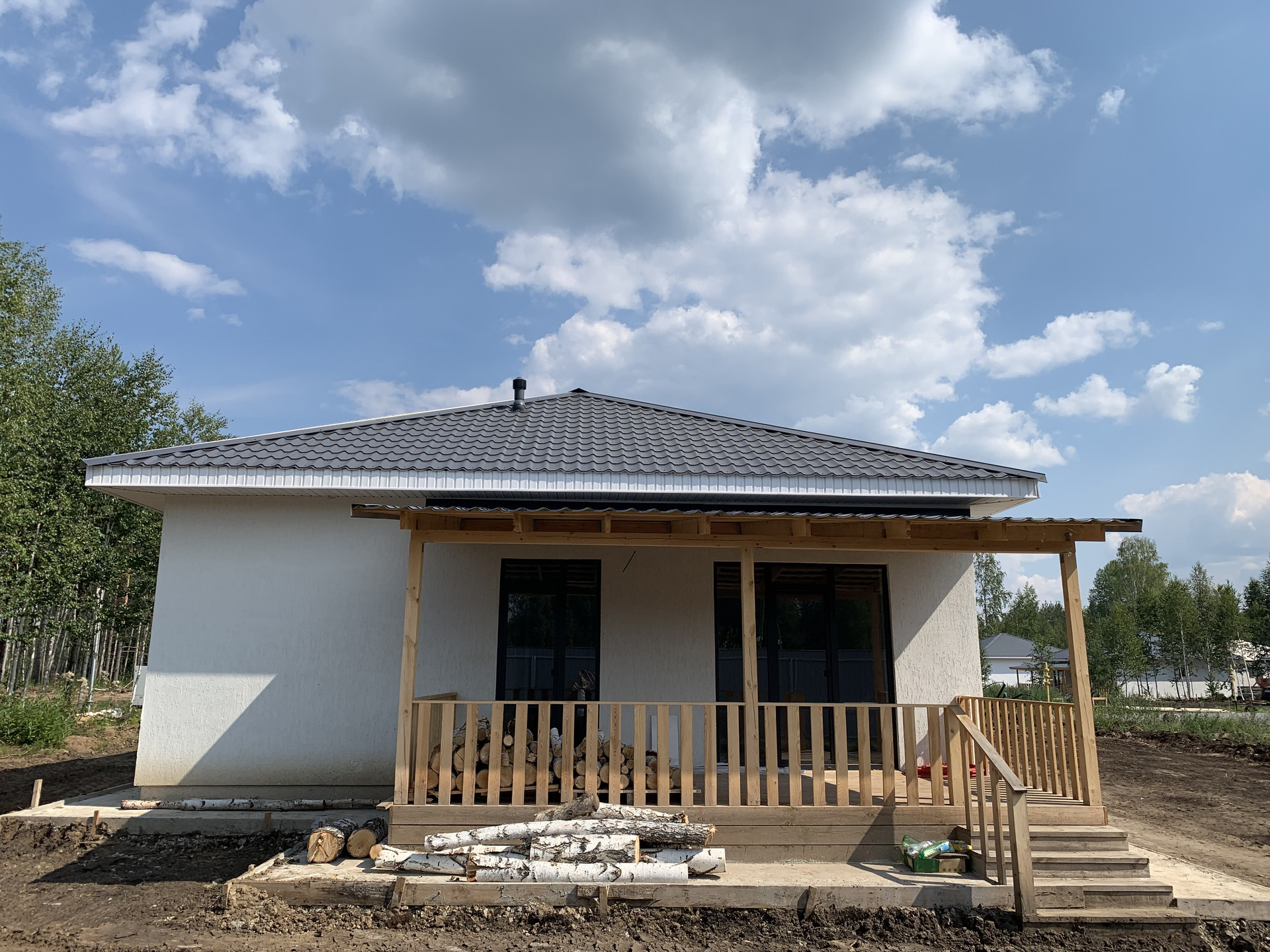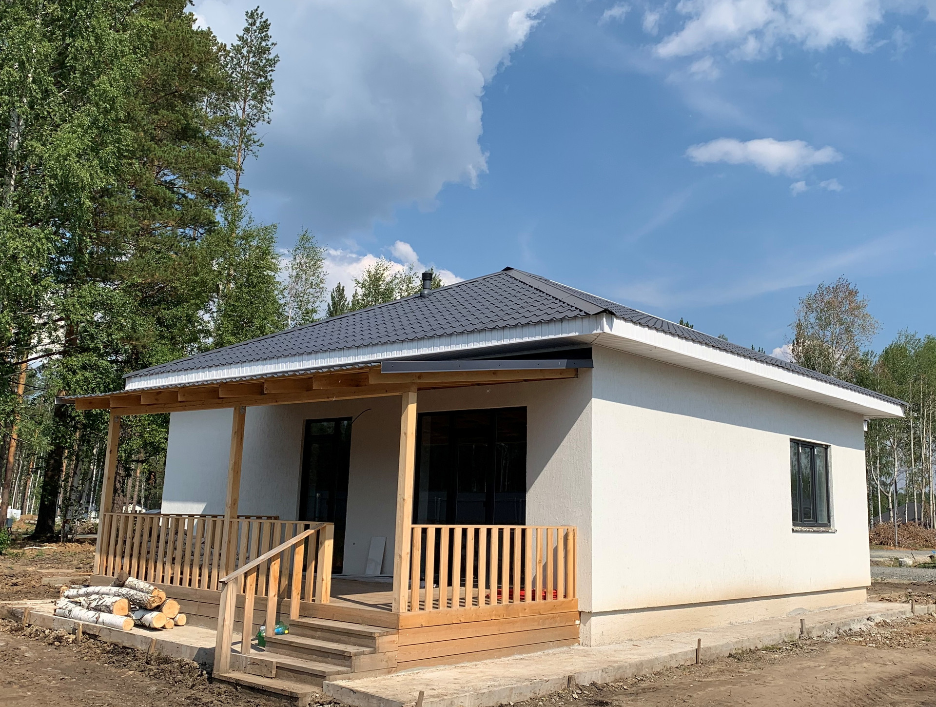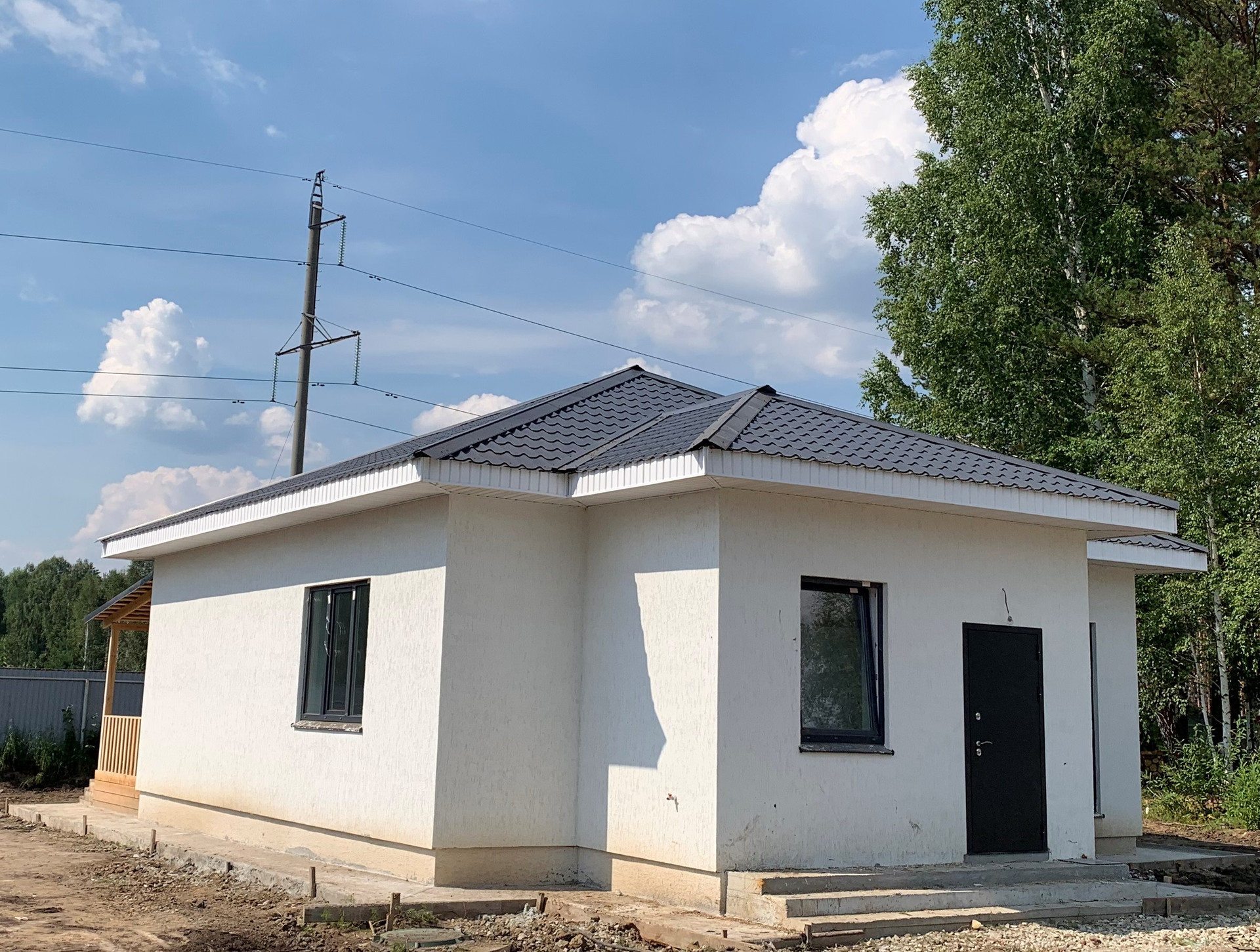 Дом построен из газоблока. В доме отопление теплыми водными полами. Газовая труба заведена на участок. Возможна чистовая отделка дома "под ключ": стоимость 600 тысяч рублей (материалы с работой).