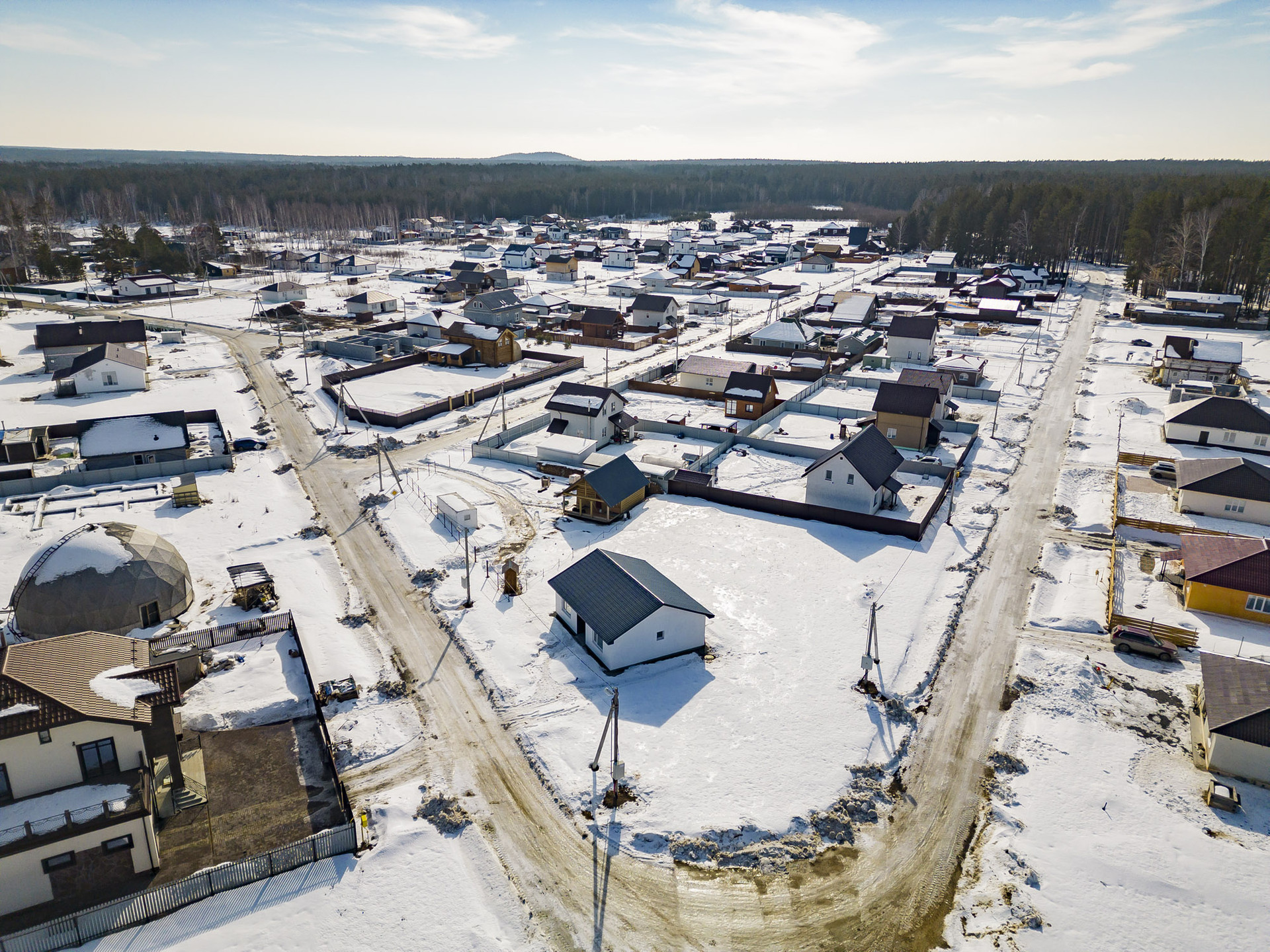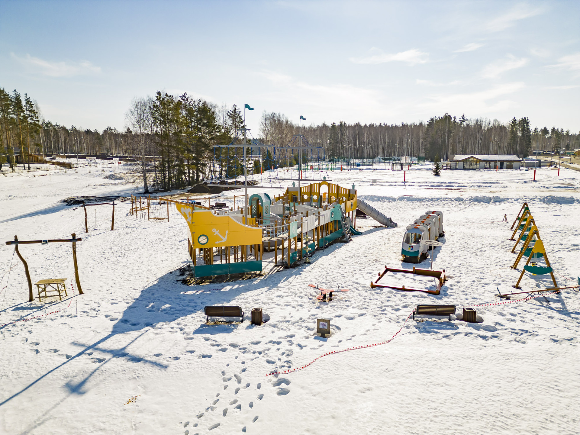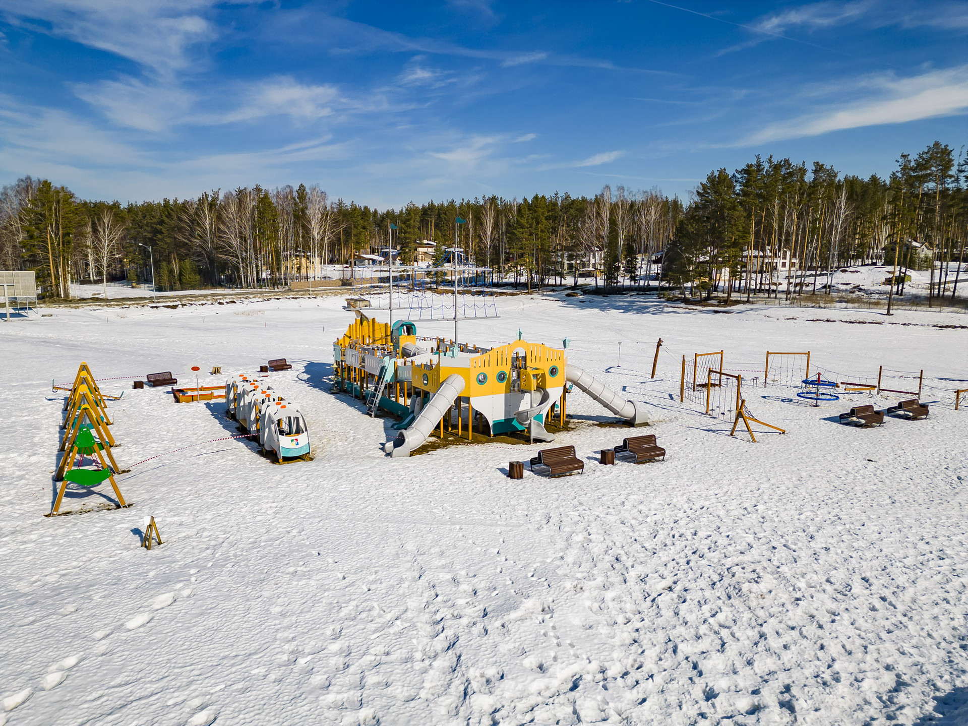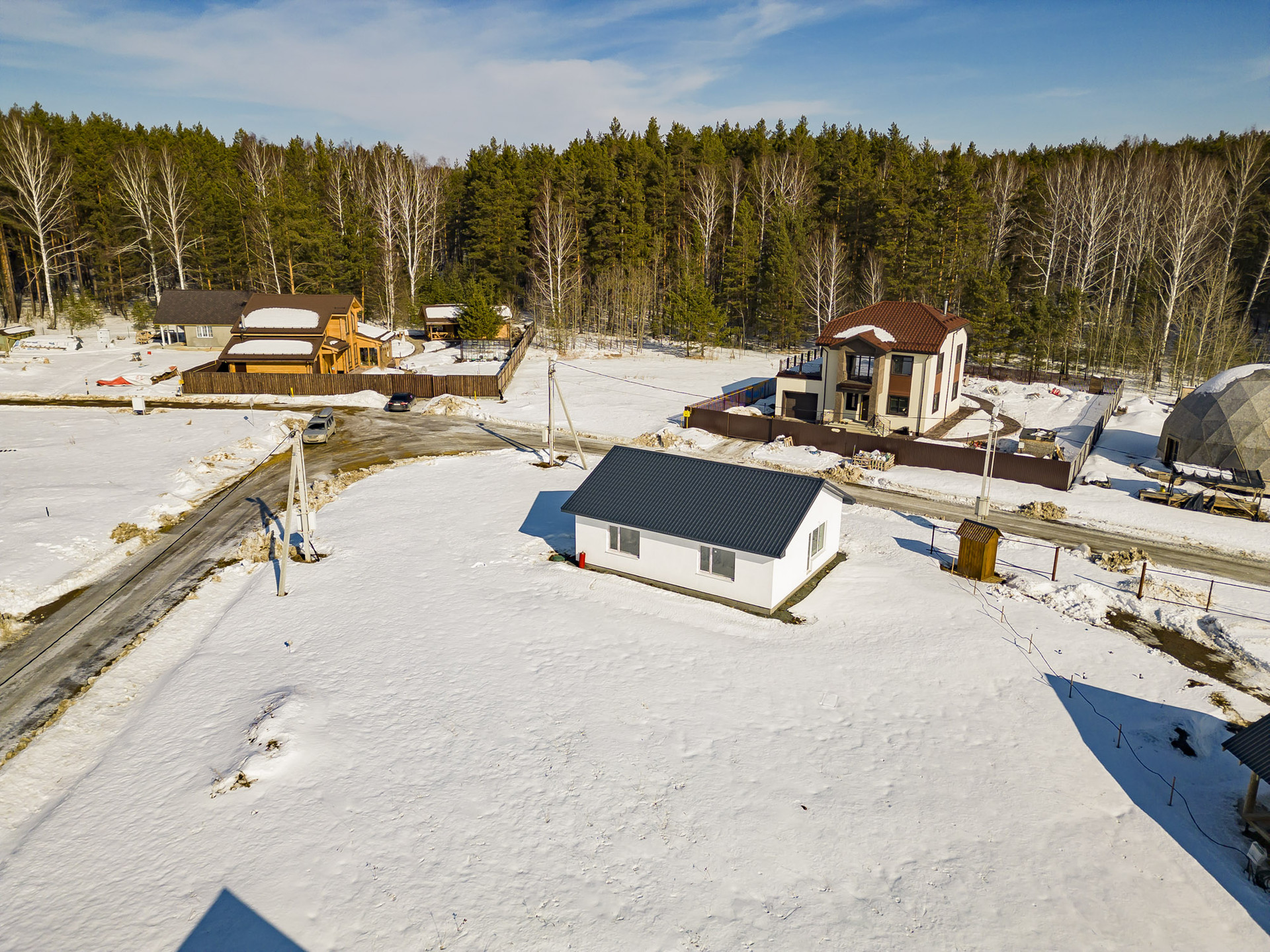 В поселке создана прекрасная инфраструктура, которая делает жизнь там очень комфортной. Есть несколько детских площадок, уличные тренажеры, поле для мини-футбола, площадка для волейбола, роллердром, который зимой превращается в каток, лыжная тропа, велосипедная и самокатная трасса, пешеходные аллеи и тротуары.