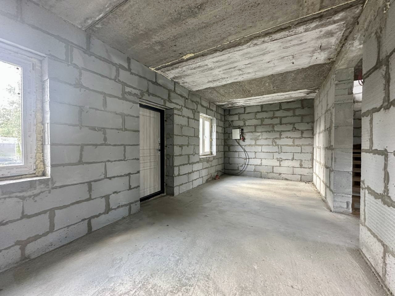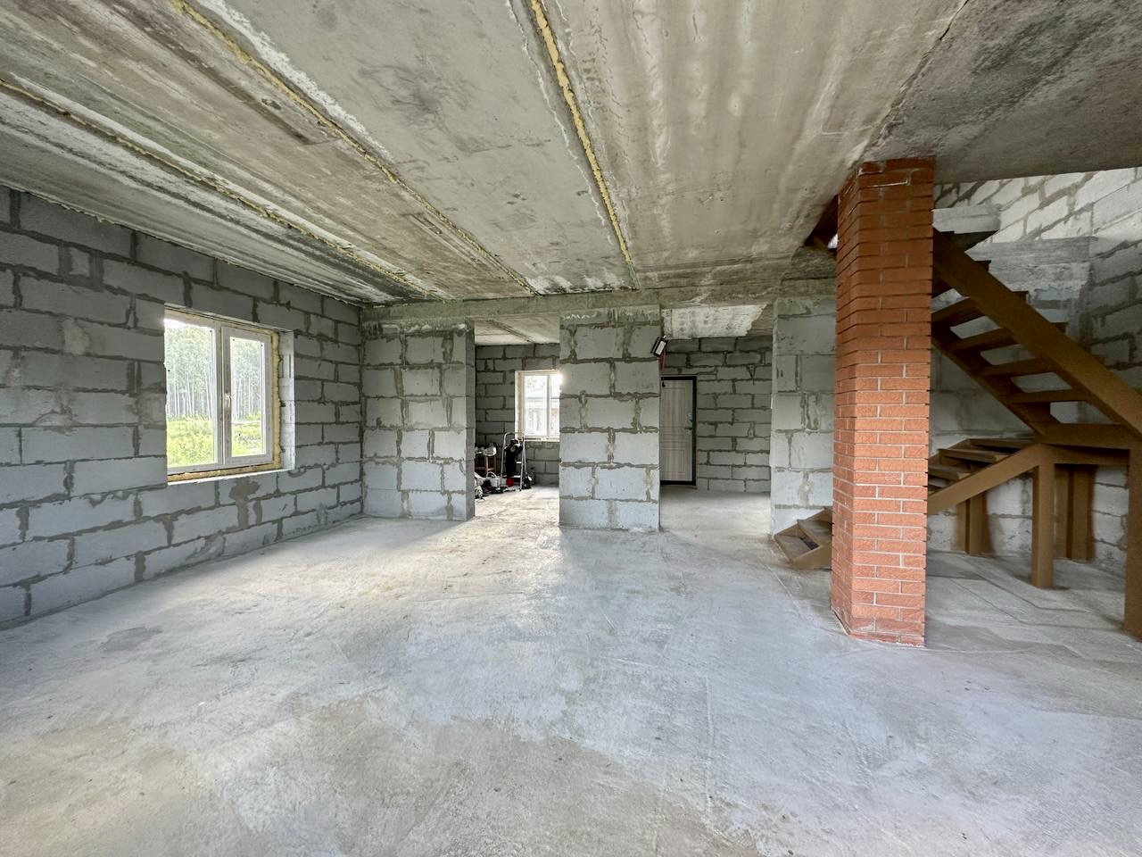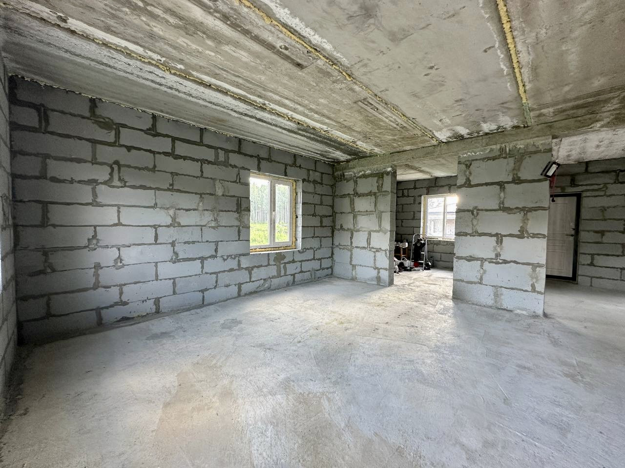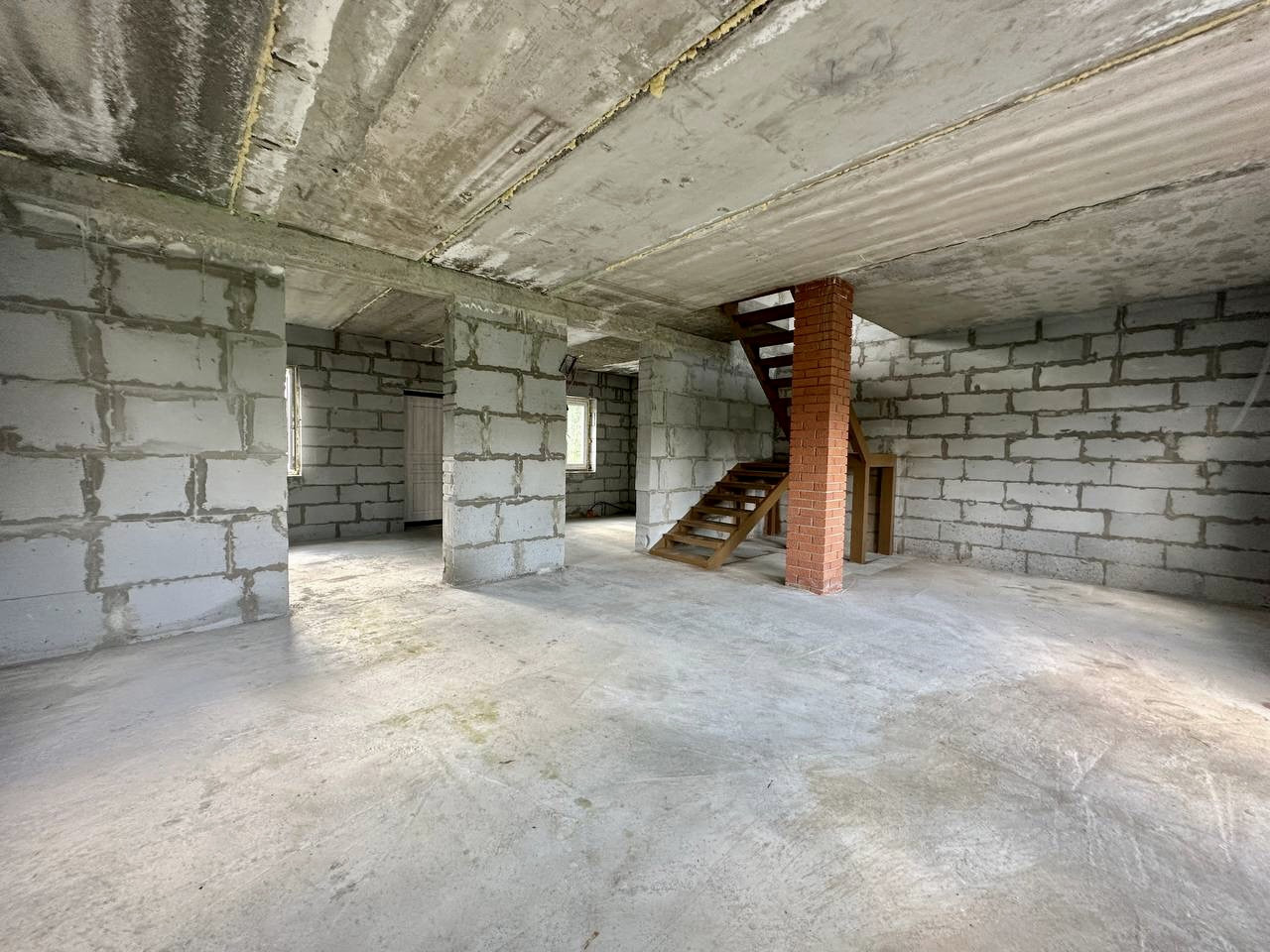 Фундамент на железобетонных сваях, наружные стены газобетонный блок(400), межэтажные перекрытия железобетонная плита и монолитная железобетонная плита.