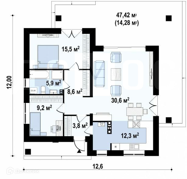 Площадь дома 115 кв.м- идеально встанет на любой участок!