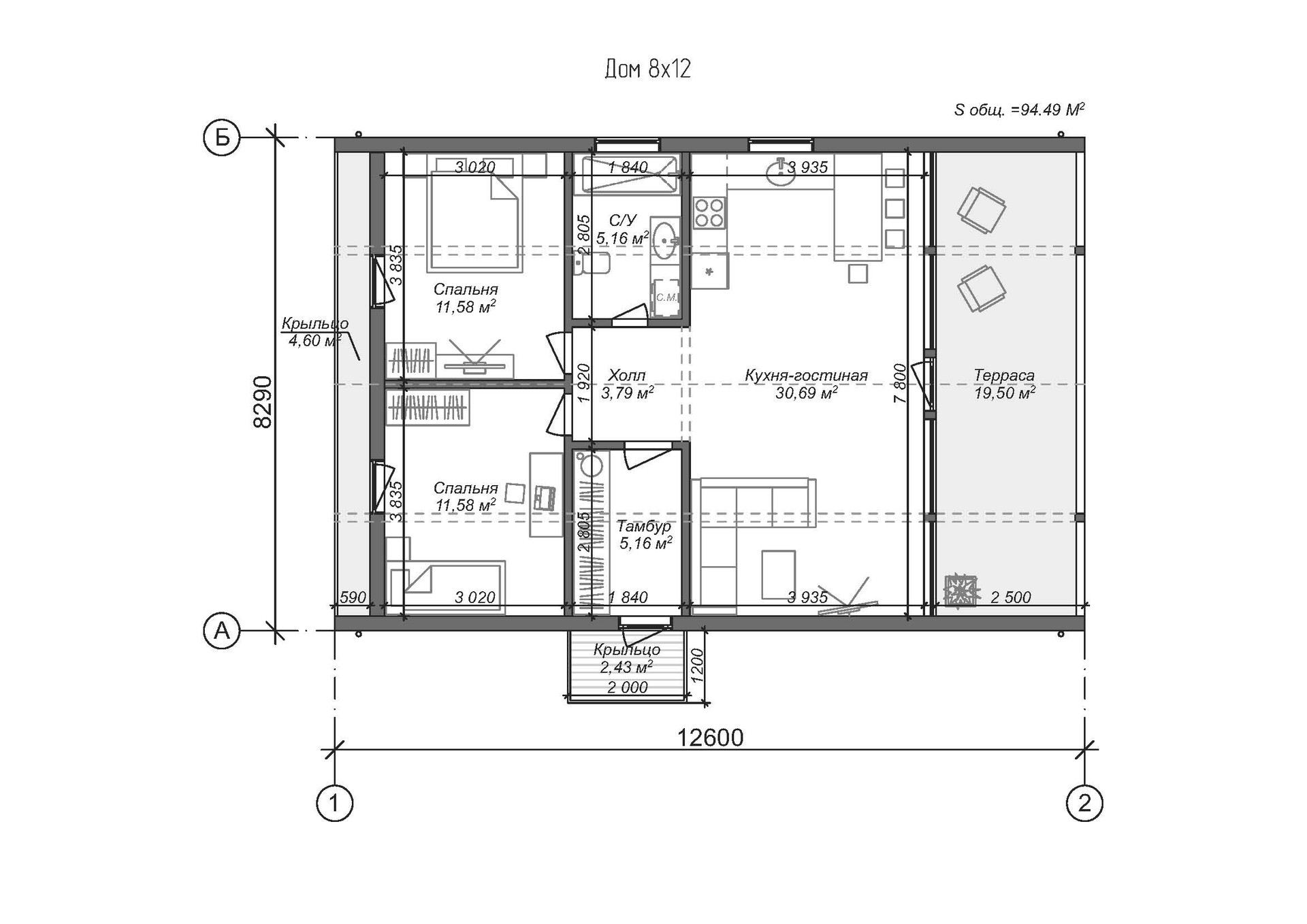 Общая площадь 94.49 м2