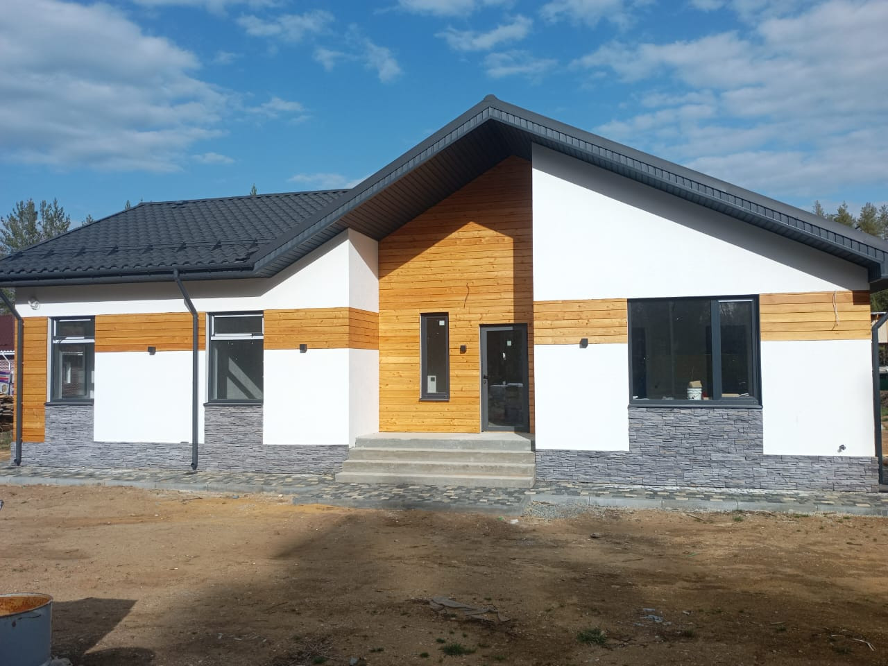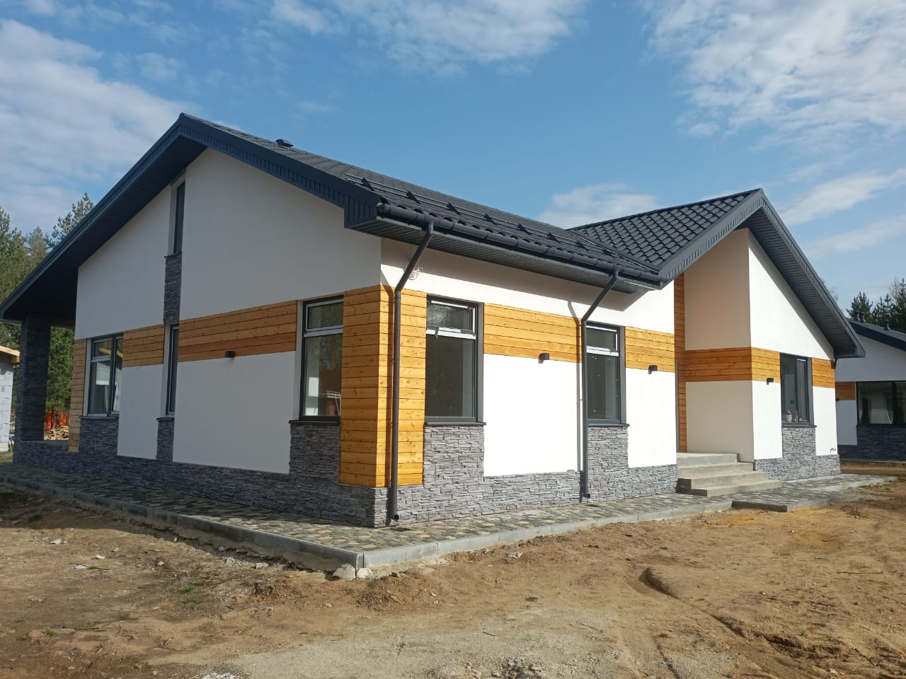 Общая площадь дома 188 кв. м, и включает в себя: кухню-гостиную, мастер-спальную (со своим гардеробом и санузлом, 3 спальные комнаты, гостевой санузел, бытовую комнату, гардеробную, котельную (“инженерное сердце дома”) и конечно же просторную, открытую террасу.