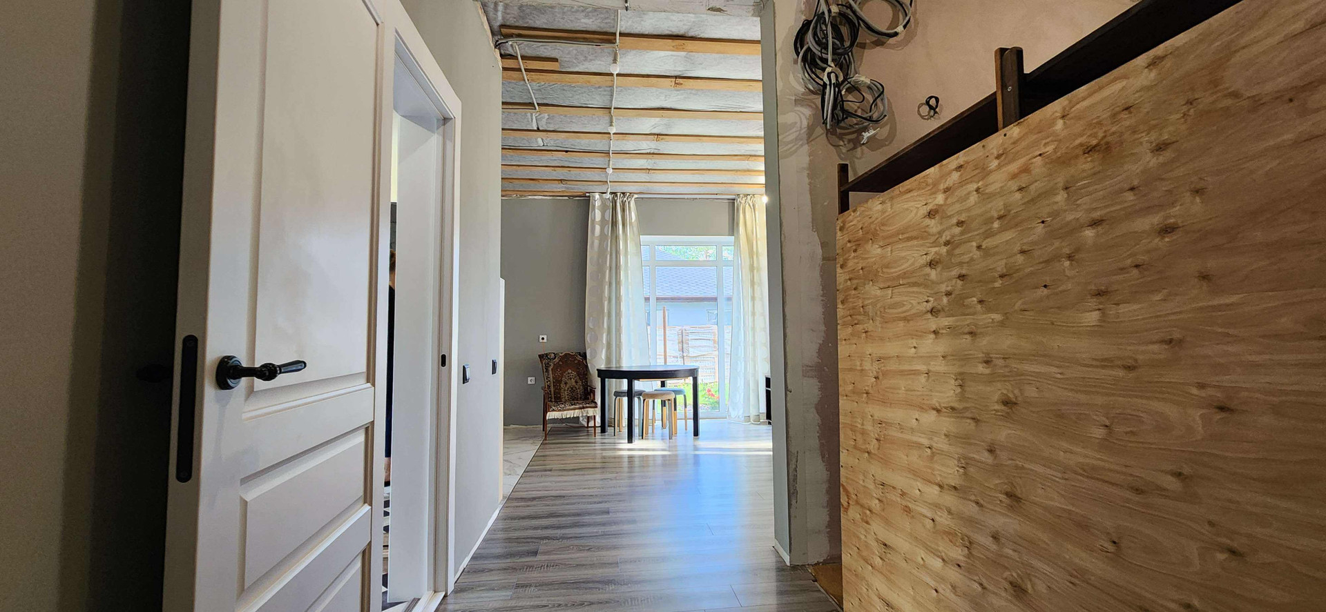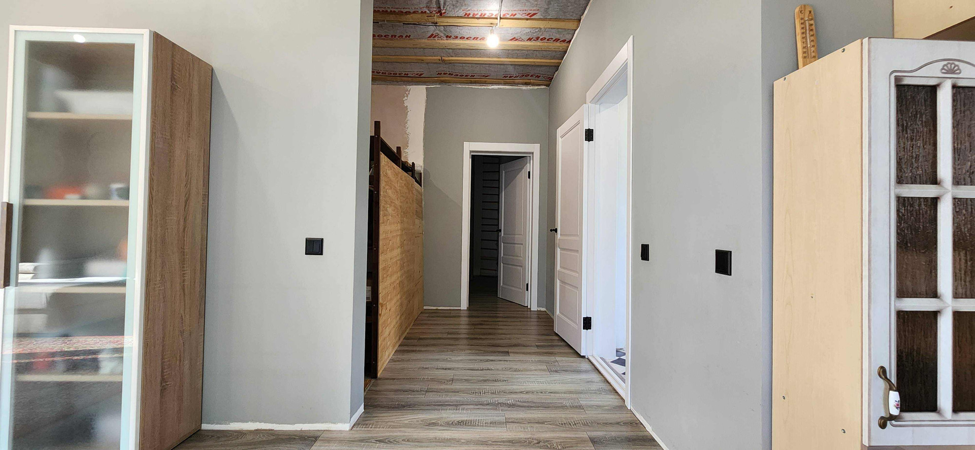 + Выполнена разводка электричества по дому, подключены розетки, выключатели, интернет и ТВ