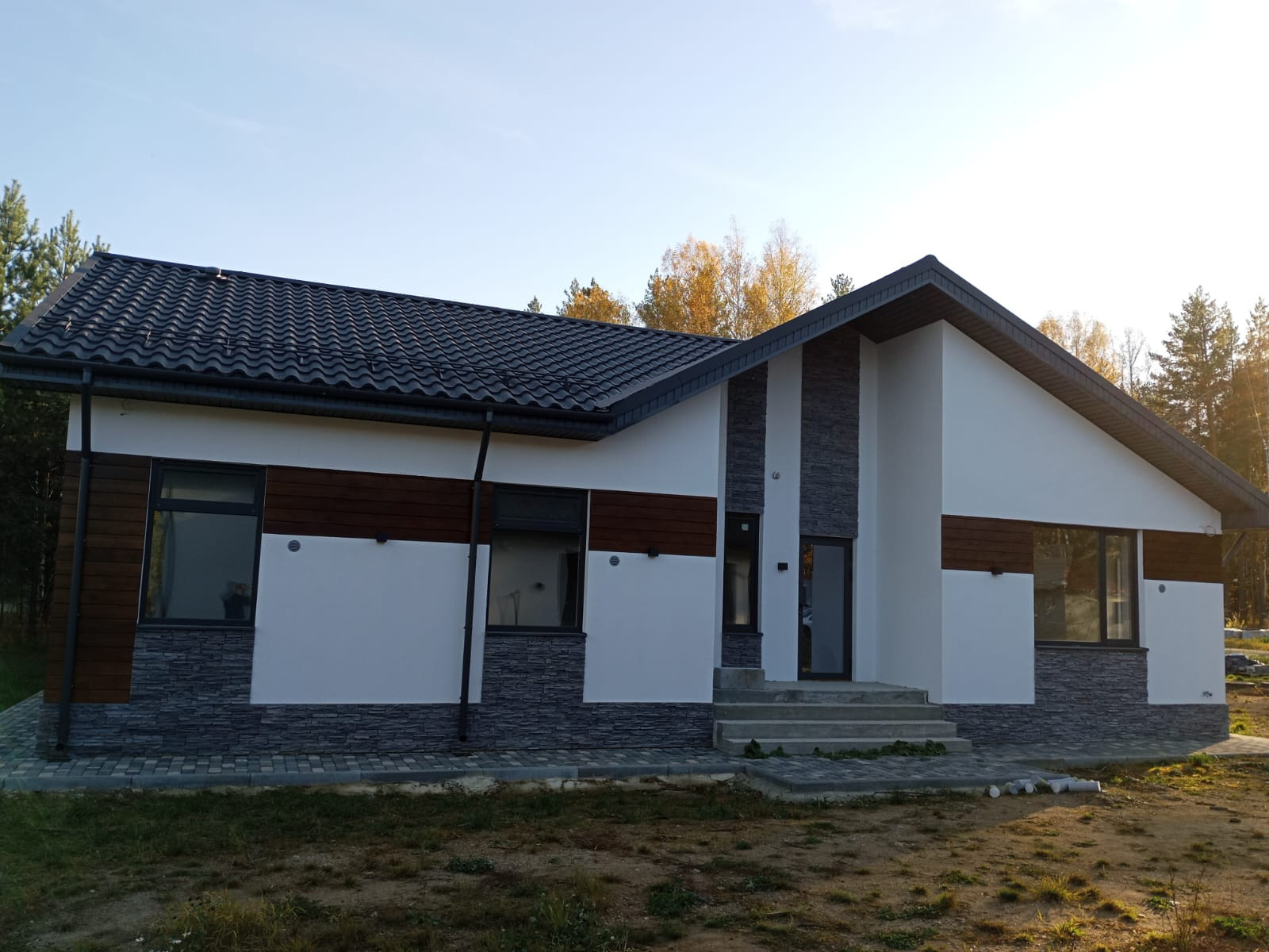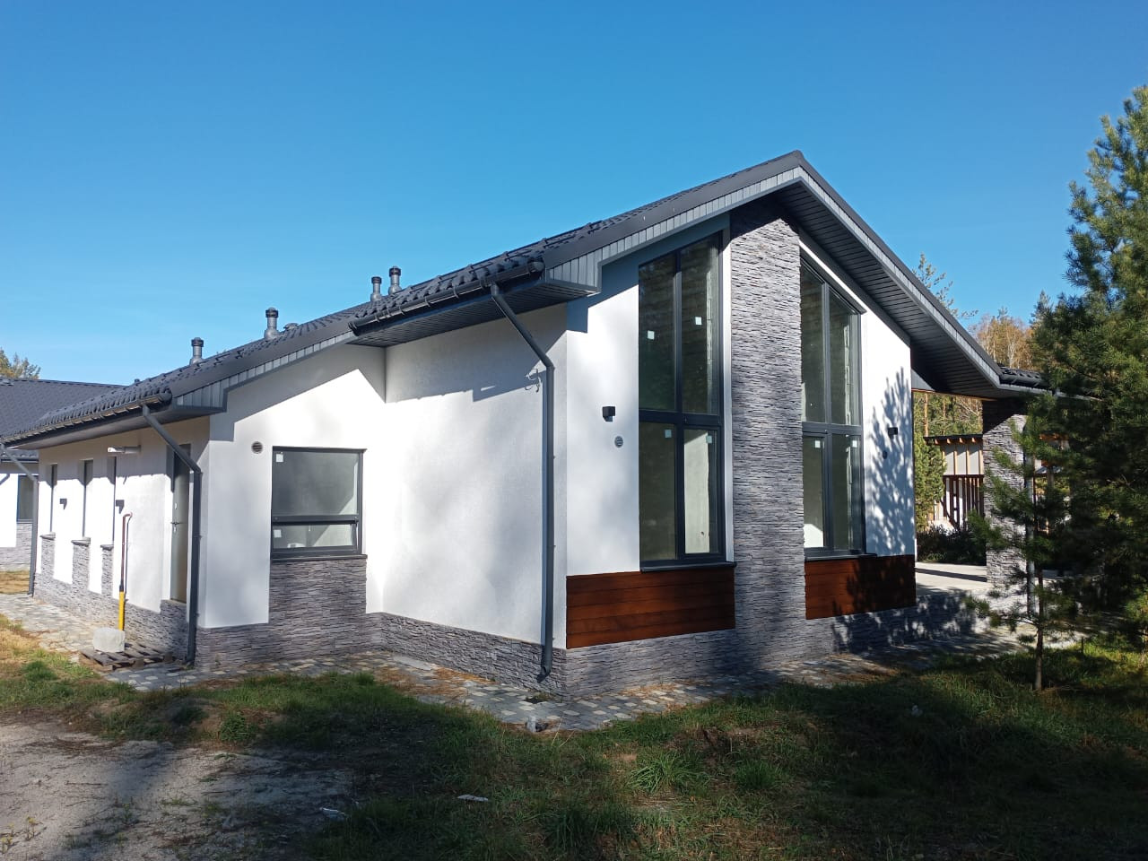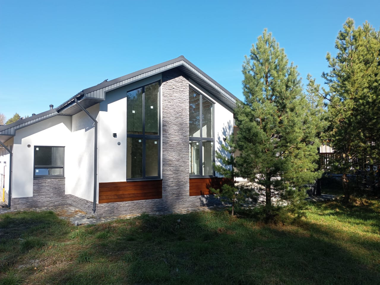 Общая площадь дома 188 кв.м, и включает в себя: кухню-гостинную, мастер-спальную (со своим гардеробом и сан.узлом, 3 спальные комнаты (ИТОГО 4 спальные комнаты), гостевой сан.узел, бытовую комнату (для стиральной машины и сушильного барабана, гардеробную, котельную (“инженерное сердце дома”) и конечно же просторную, открытую террасу.