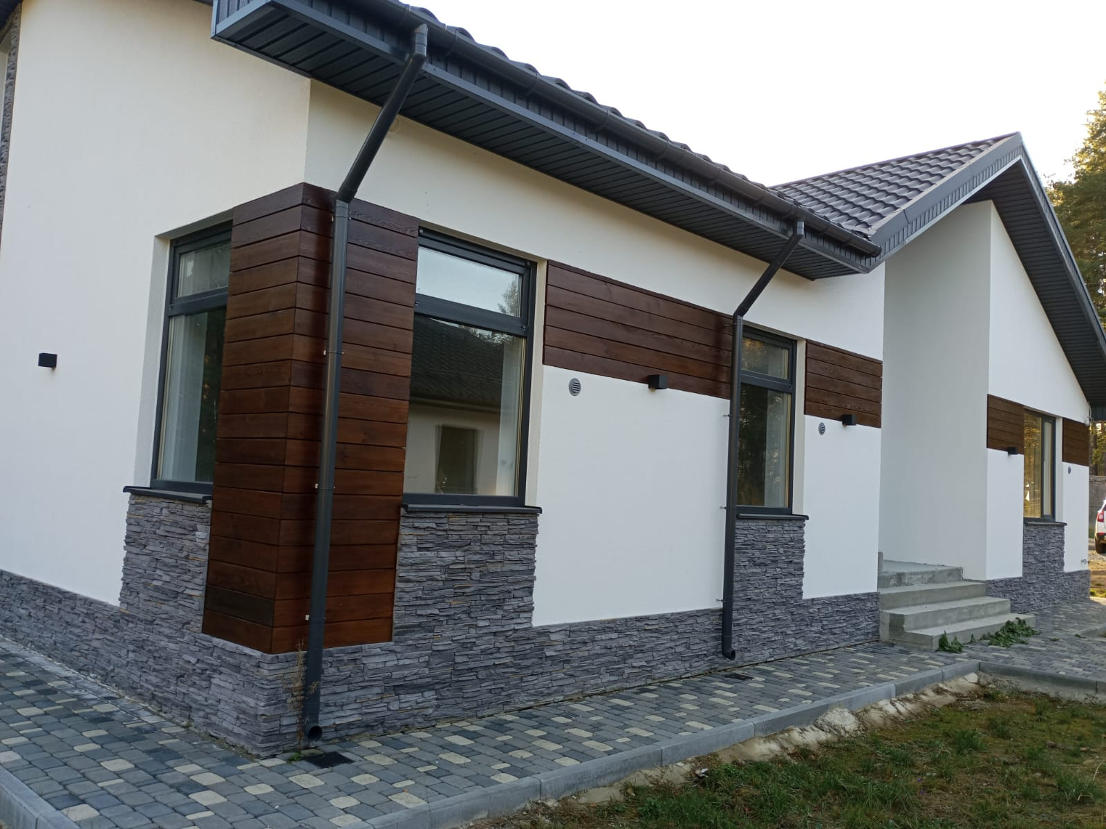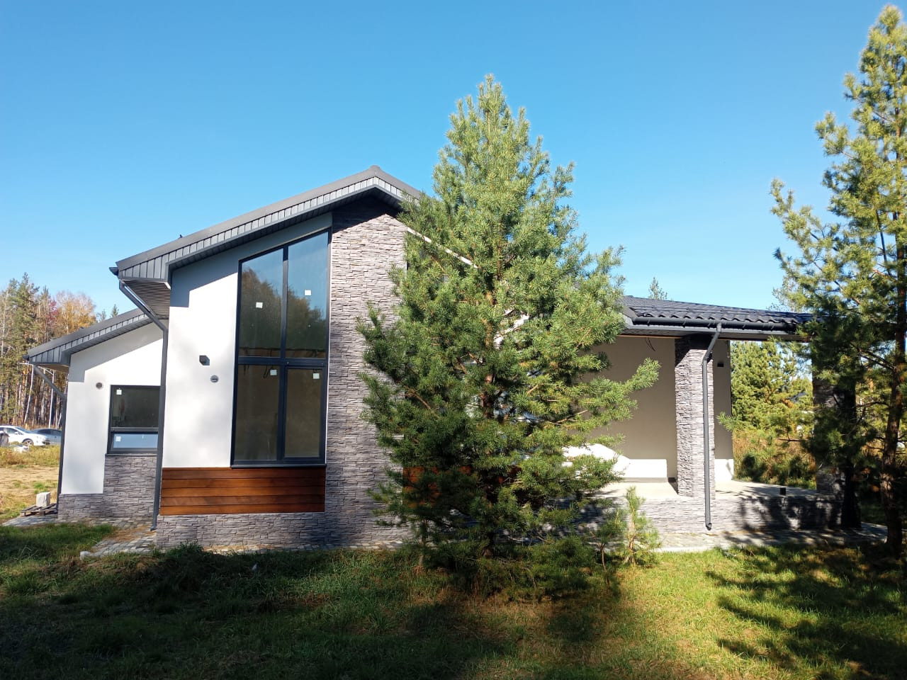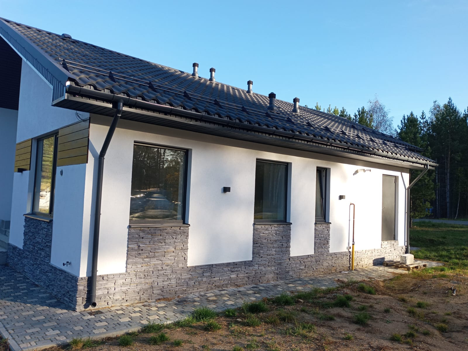 Общая площадь дома 188 кв.м, и включает в себя: кухню-гостинную, мастер-спальную (со своим гардеробом и сан.узлом, 3 спальные комнаты (ИТОГО 4 спальные комнаты), гостевой сан.узел, бытовую комнату (для стиральной машины и сушильного барабана, гардеробную, котельную (“инженерное сердце дома”) и конечно же просторную, открытую террасу.