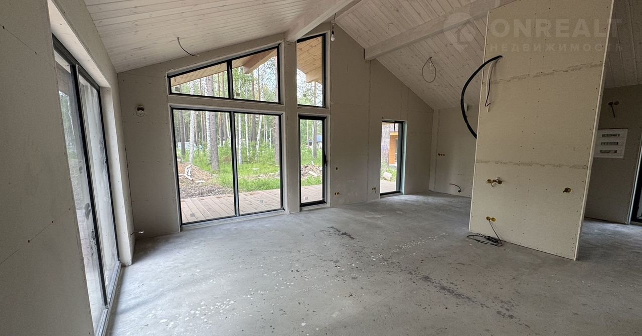 Отделка «под чистовую»: стены гипсокартон, окна в пол, возможность установки дверей 2,3м+чистовой деревянный потолок