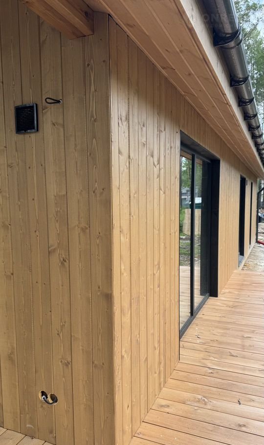 Фундамент УШП со всеми коммуникациями, технология строительства каркасная, материал крыши – Кликфальц.