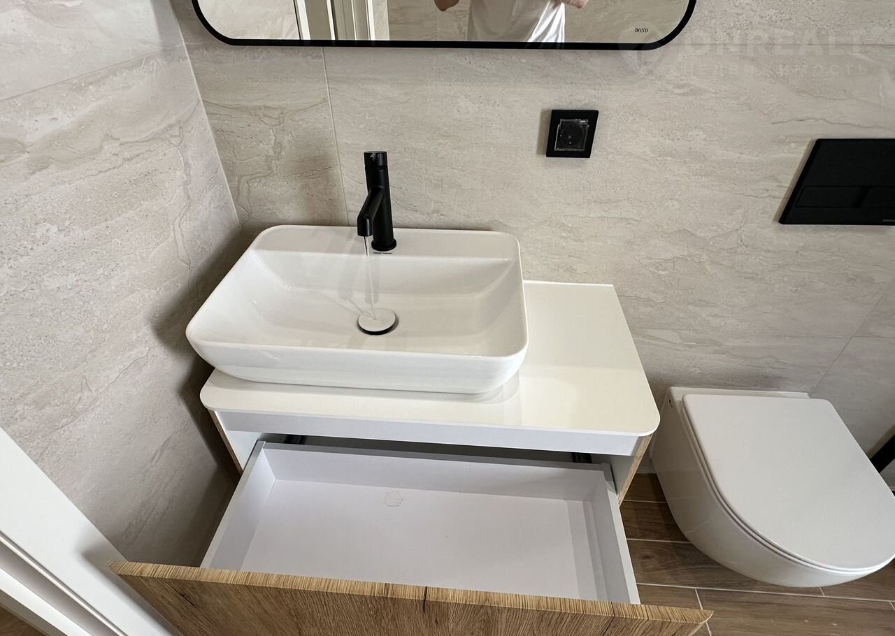 - в c/у кеpaмогpанит и кoмплектация под ключ