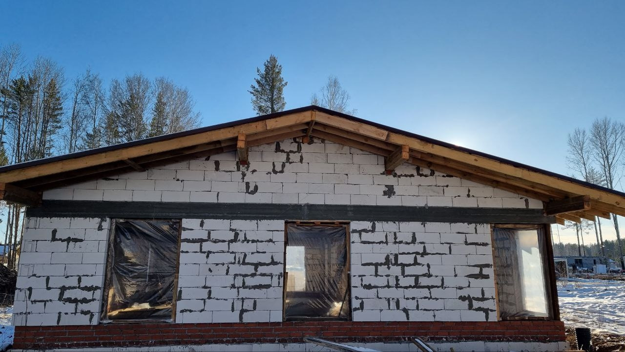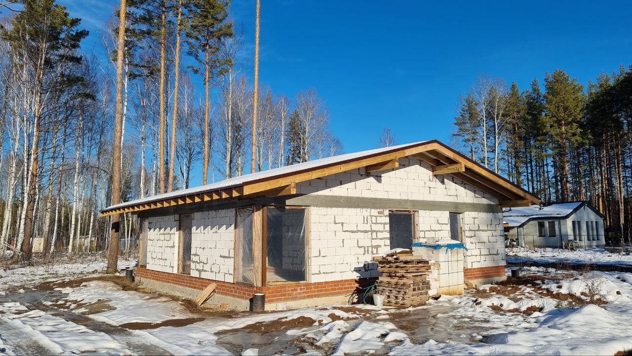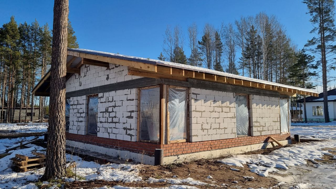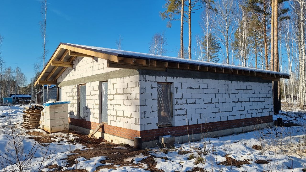 3. Готов фундамент, пристенный дреннаж, стены, внутренние перегородки, кровля под покрытие, коммуникации заведены в дом.