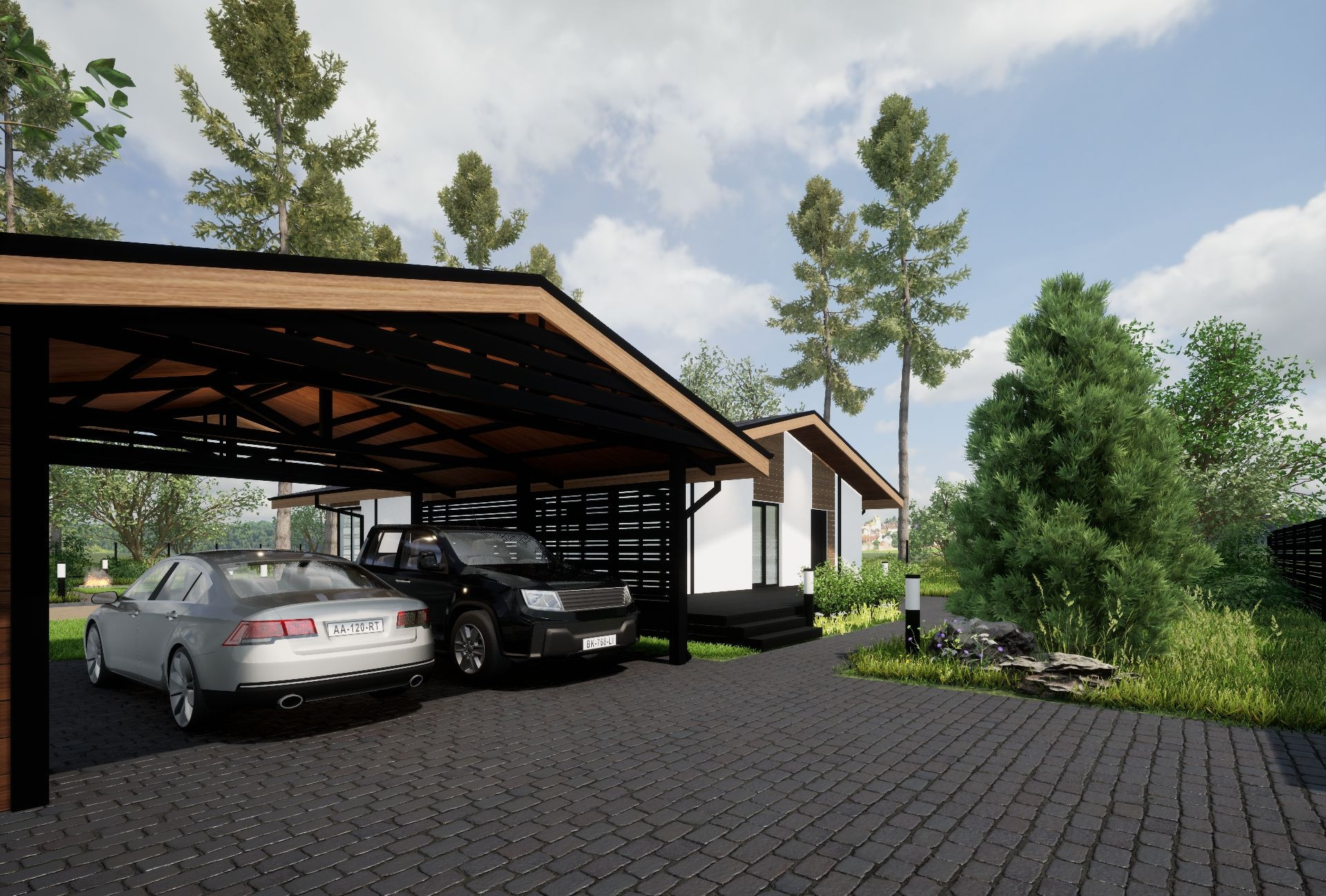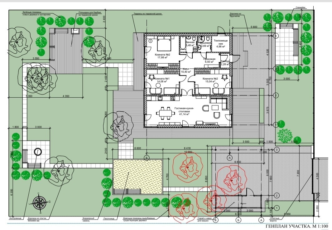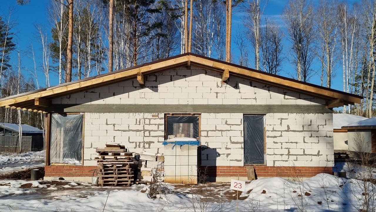 Деревья сохранены, дом строится для себя, хозяин переехал в другую страну, по рабочему контракту, потому дом на продаже, но в плане ведётся его достройка, купить можно на любом этапе.