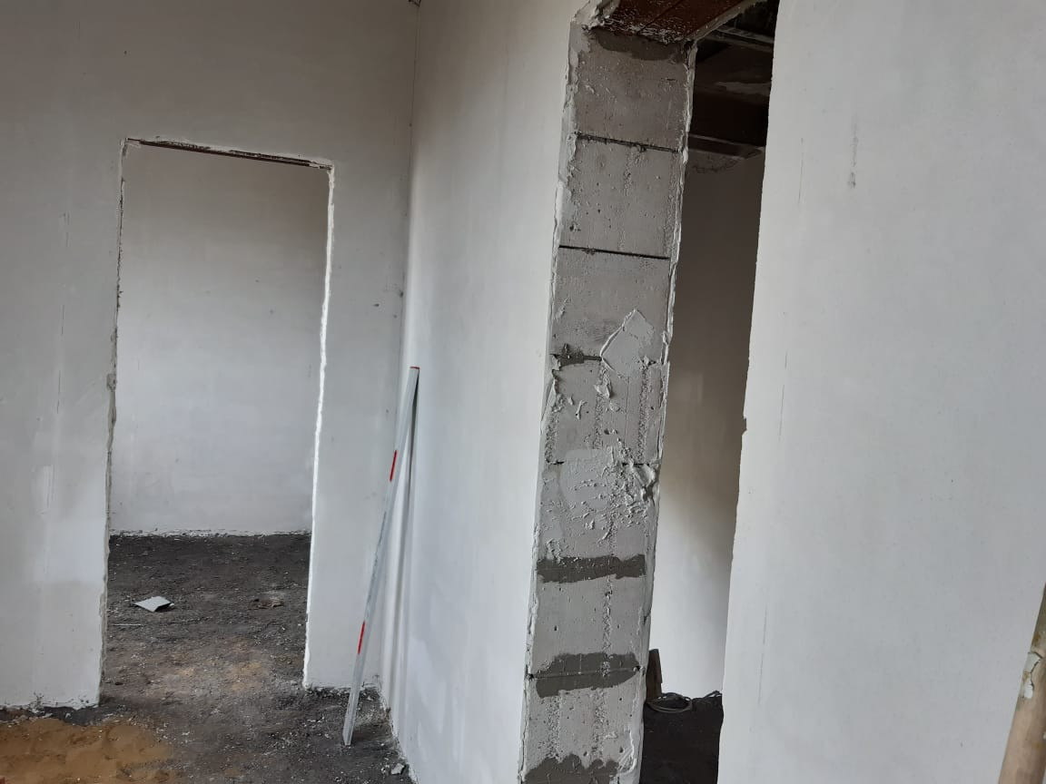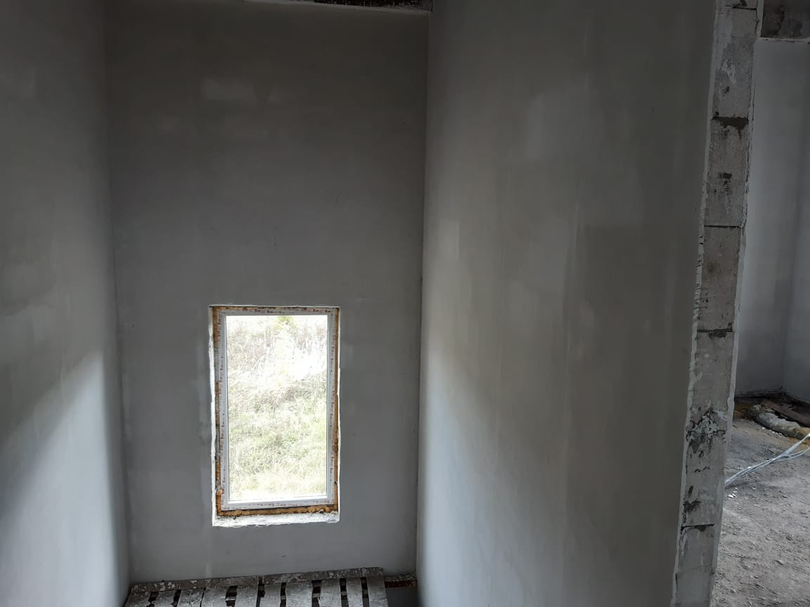 - перегородки на 1 и 2 этажах , выполнена механизированная штукатурка.