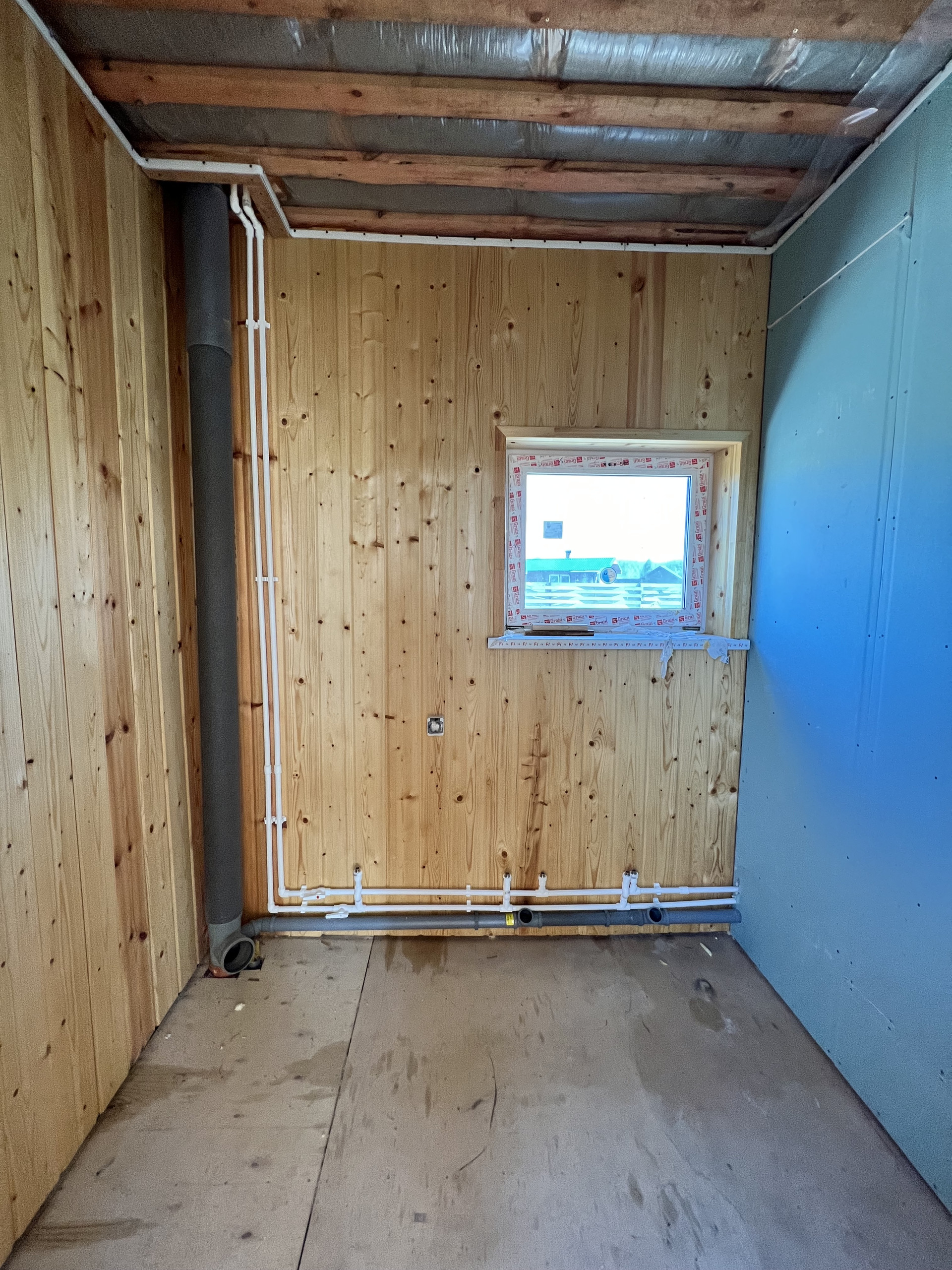 Выполнена разводка электрики и труб.