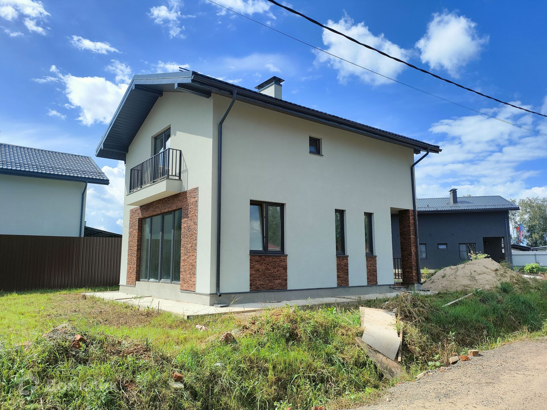 Арт. 53101763. Продается ультрасовременный 2-х этажный коттедж с панорамным остеклением и открытым не большим балконом на втором этаже. Дом общей площадью 105,8 кв.м., на участке 4 сотки. Просторная планировка. Полноценный второй этаж, с комфортным уровнем высоты потолков во всех помещениях. Фундамент дома, качественная монолитная плита, без цокольного этажа. Внешние стены построены из пенобетонных блоков. Коттедж снаружи отделан фасадной штукатуркой, входная группа дома натуральным камнем. Межэтажные перекрытия железобетонные. Мы заходим в дом, и попадаем в небольшую прихожую 7,26 кв.м, далее на первом этаже мы видим слева боллерную 5,97 кв.м., уже сделанную под газовую котельную, в ней же электрощиток дома и отдельно помещение под гостевой санузел первого этажа 6,11 кв.м., прямо по корридору располагается просторная кухня-гостинная 27 кв.м. с панорамным окном и возможностью выхода на улицу или в будующем пристроенную террасу. Второе окно в кухне -гостинной дает возможность хозяйке наблюдать за происходящим на улице. Высокие потолки первого этажа дают много света и пространства в кухне. Монолитная лестница на второй этаж, исключит акустический дискомфорт. На втором этаже расположены две уютные комнаты по 10,23 кв.м., и одна просторная мастер-спальня 17,33 кв.м. с панорамным большим окном, выходом на балкон и собственной гардеробной 6,38 кв.м. На втором этаже так же есть санузел 5,94 кв.м. Вся инженерия и электрика дома сделана из дорогих и долговечных материалов. Кровля металлочерепица, толщина утеплителя на крыше 250 мм. Перед домом есть площадка для парковки 2 машин. Дороги по поселку все отсыпаны асфальтовой крошкой, возможно подключение интернета с большой скоростью передачи данных.