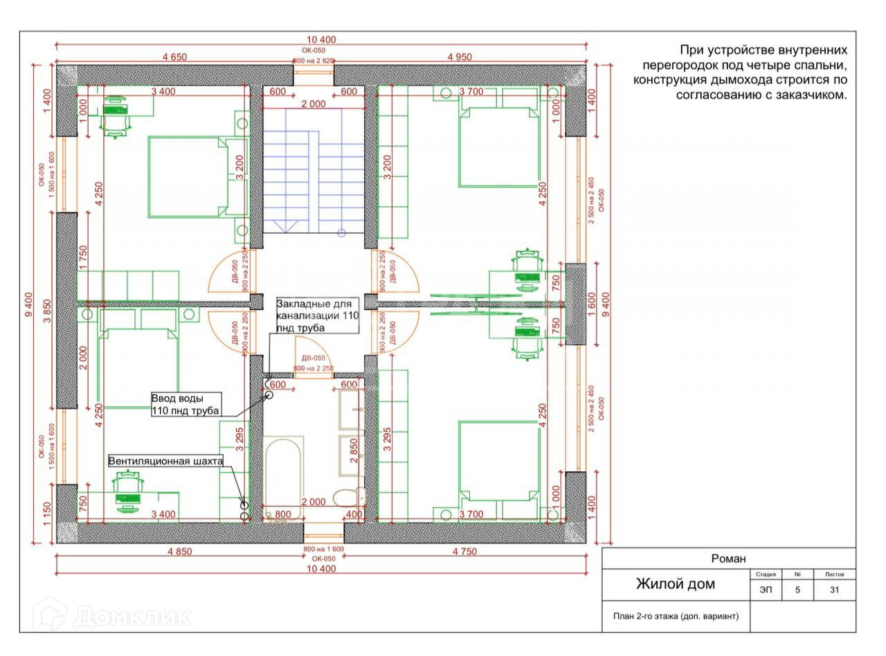 Второй этаж: 4 комнаты, санузел
