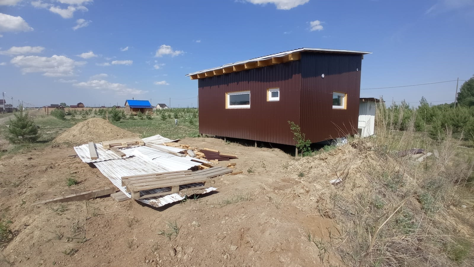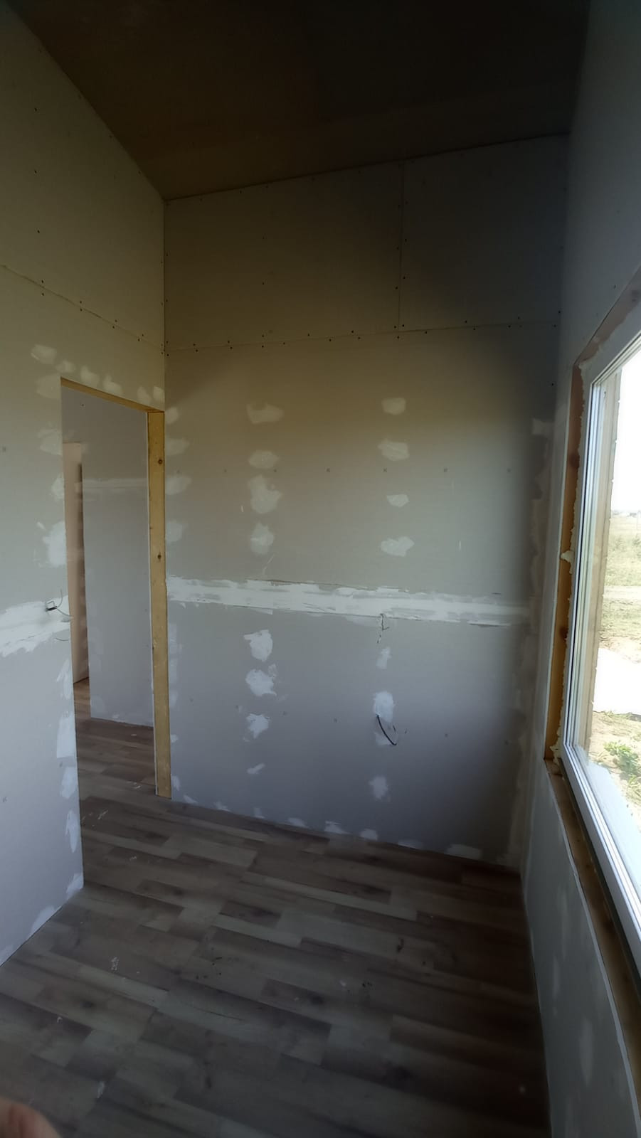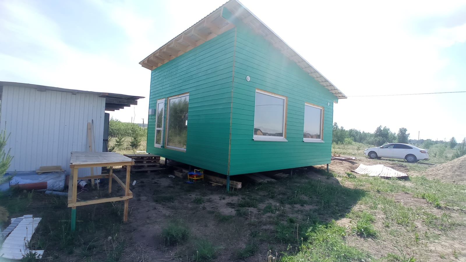 Дом каркасный 6х6 одноэтажный с интересным, раззонированным фасадом. Фундамент сваи из металлической трубы. Утепление стены, пол и потолок пеноплекс 100 мм. Стены и потолок выполнены под чистовую отделку, на полу уложен влагостойкий ламинированный Quick Deck. Электрика разведена, соединение проводов выполнено методом сварки. Электрический щиток установлен, подключен.