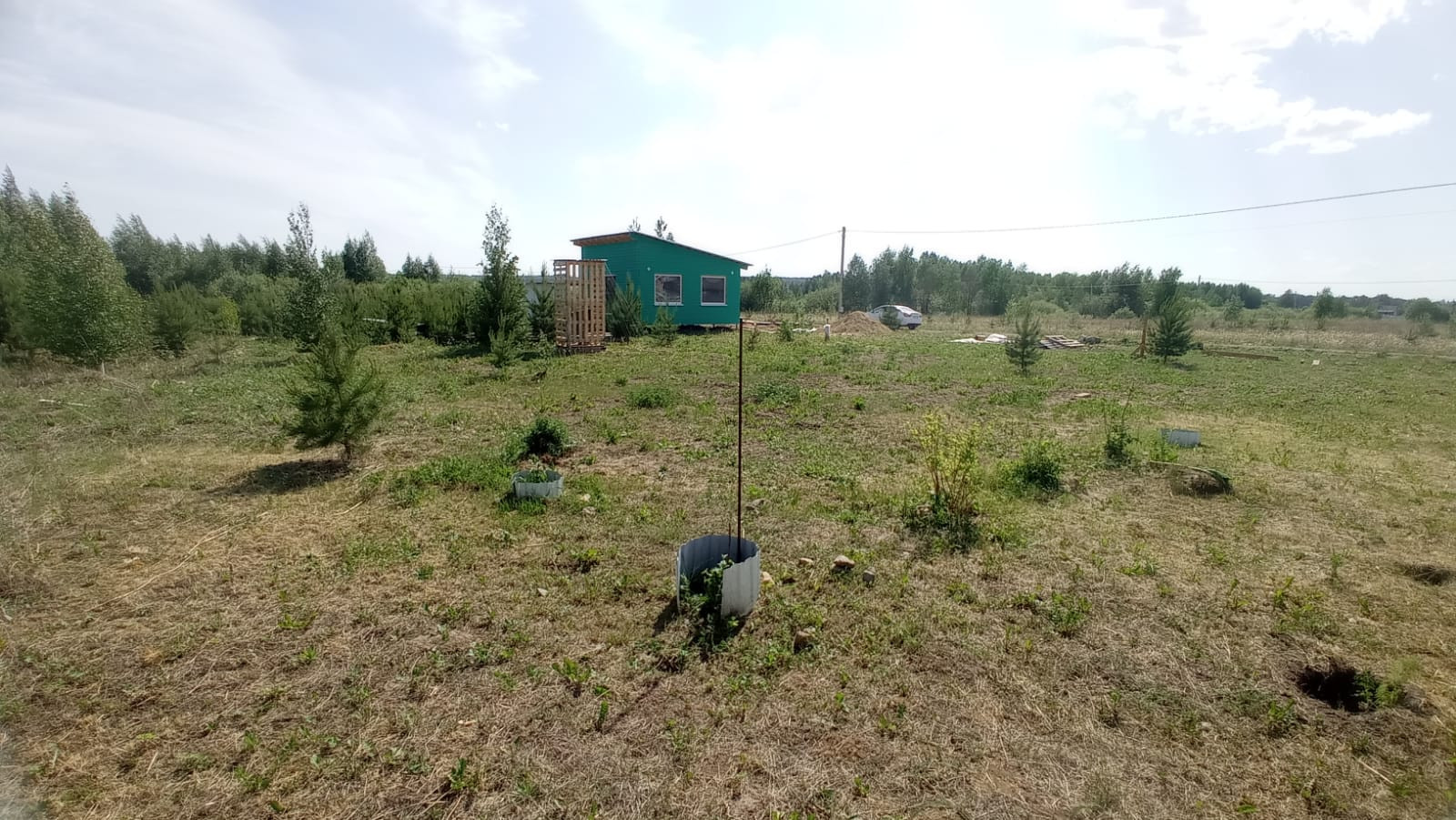 Участок 10 соток, ровный. Вид разрешенного использования индивидуальное дачное строительство. Сделан широкий, удобный заезд 8 метров, труба стальная Ду 300, обсыпана мелким щебнем. На участке посажены жимолость и смородина. Четверть участка занимают молодые сосны высотой 1,5-1,7 метра.