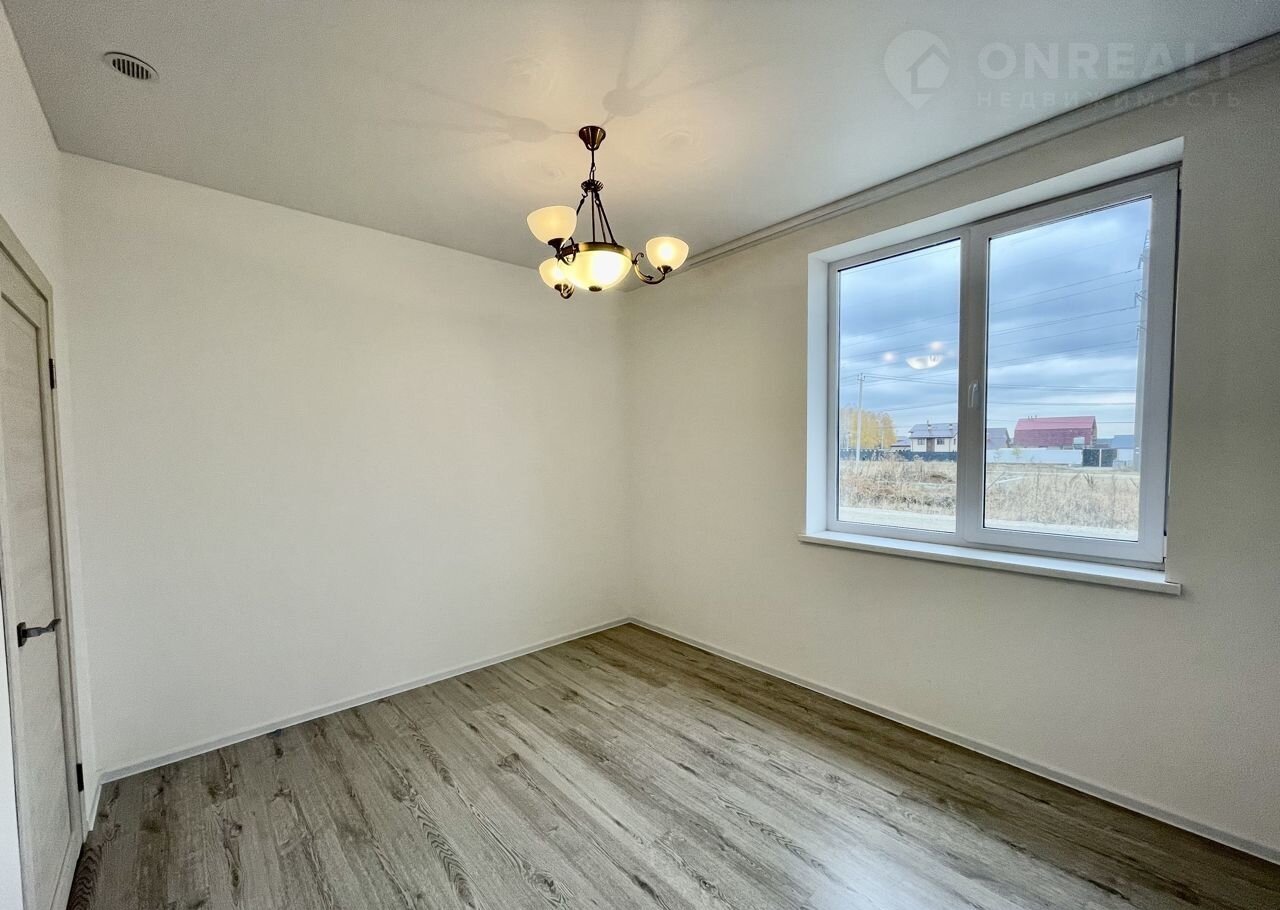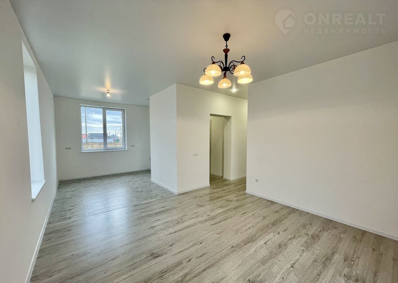 В доме три спальни: 13м², а также просторная кухня-гостиная 32м² с панорамным остеклением, высокими потолками и предполагаемым выходом на террасу. Благодаря большим окнам, комнаты наполнены светом, а грамотное зонирование пространства создаёт ощущение простора.