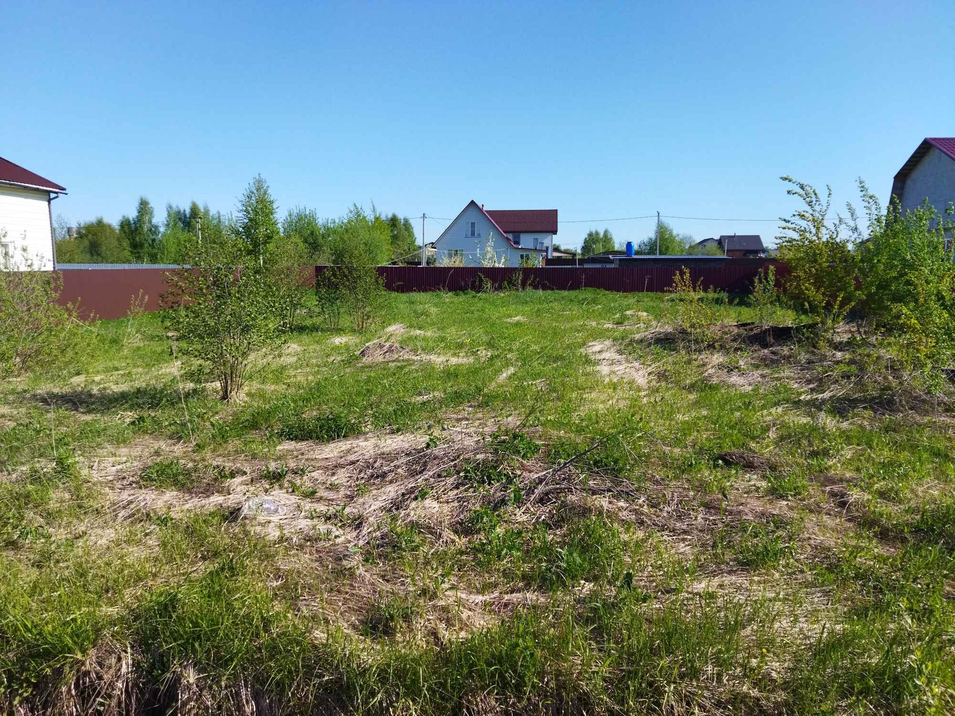 Участок ровный, никаких построек не имеет, с трех сторон окружен соседскими заборами, что позволяет сэкономить на установке ограждений.
