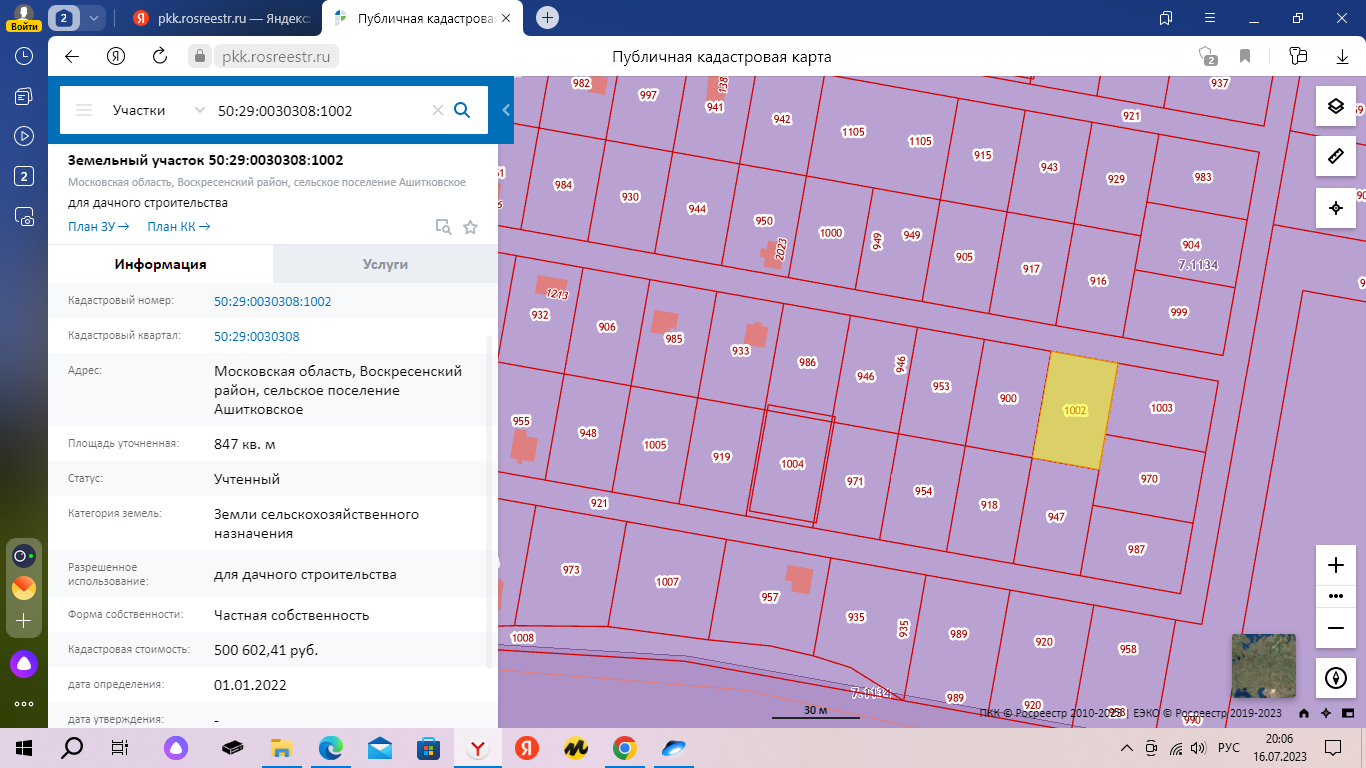 ✔Кадастровый номер 50:29:0030308:1002