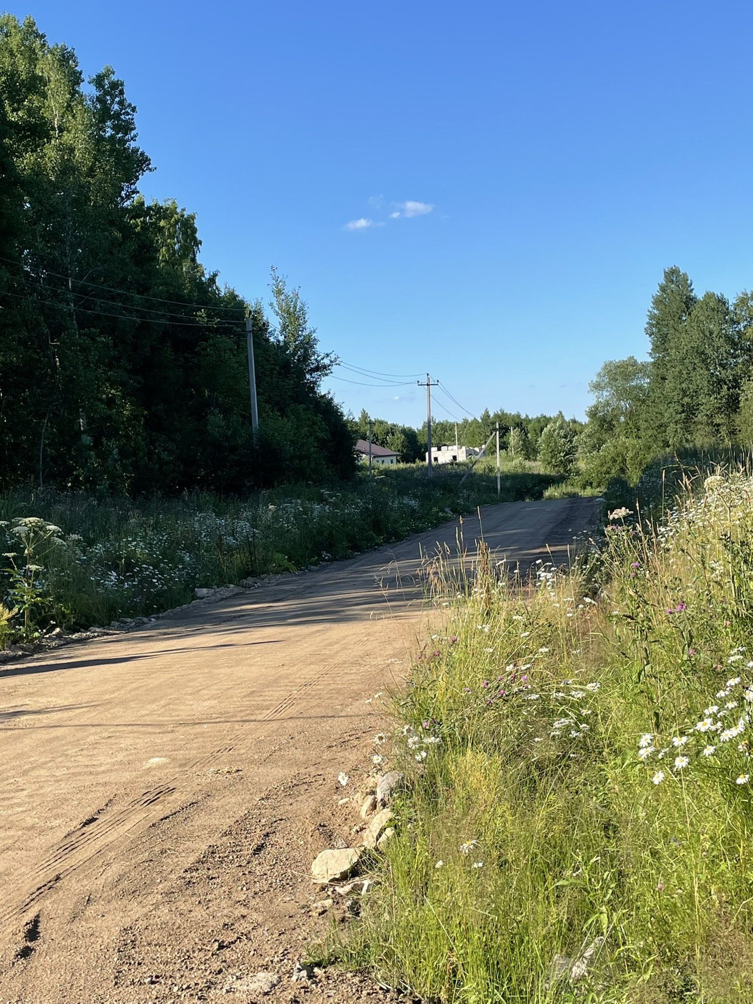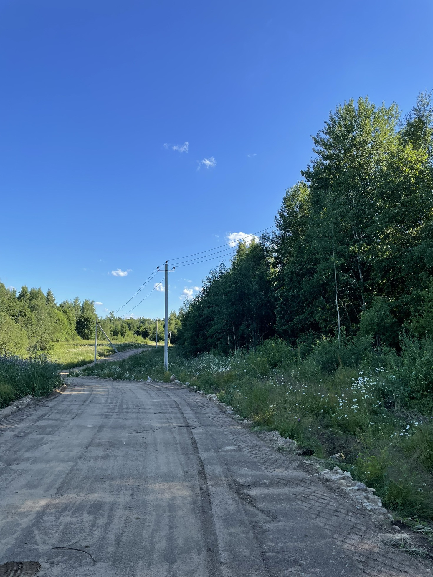 Отдельная дорога ведет в наш поселок, сделана мелиорация, водоотведение, участки имеют правильную, четырёхугольную форму, полностью расчищены от мелколесья и кустов, на каждый участок подведены 15 кВт электричества.