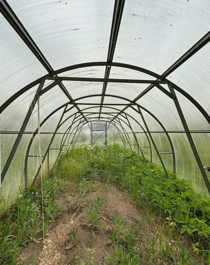 На участке расположена большая теплица из поликарбоната.