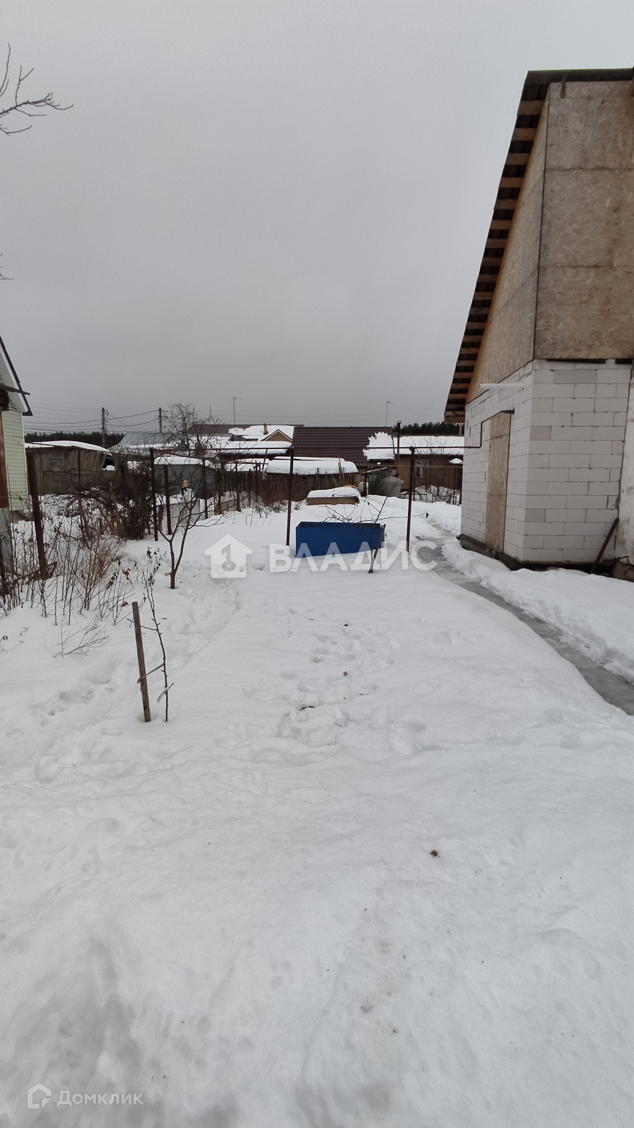 На участке бревенчатый сарай.