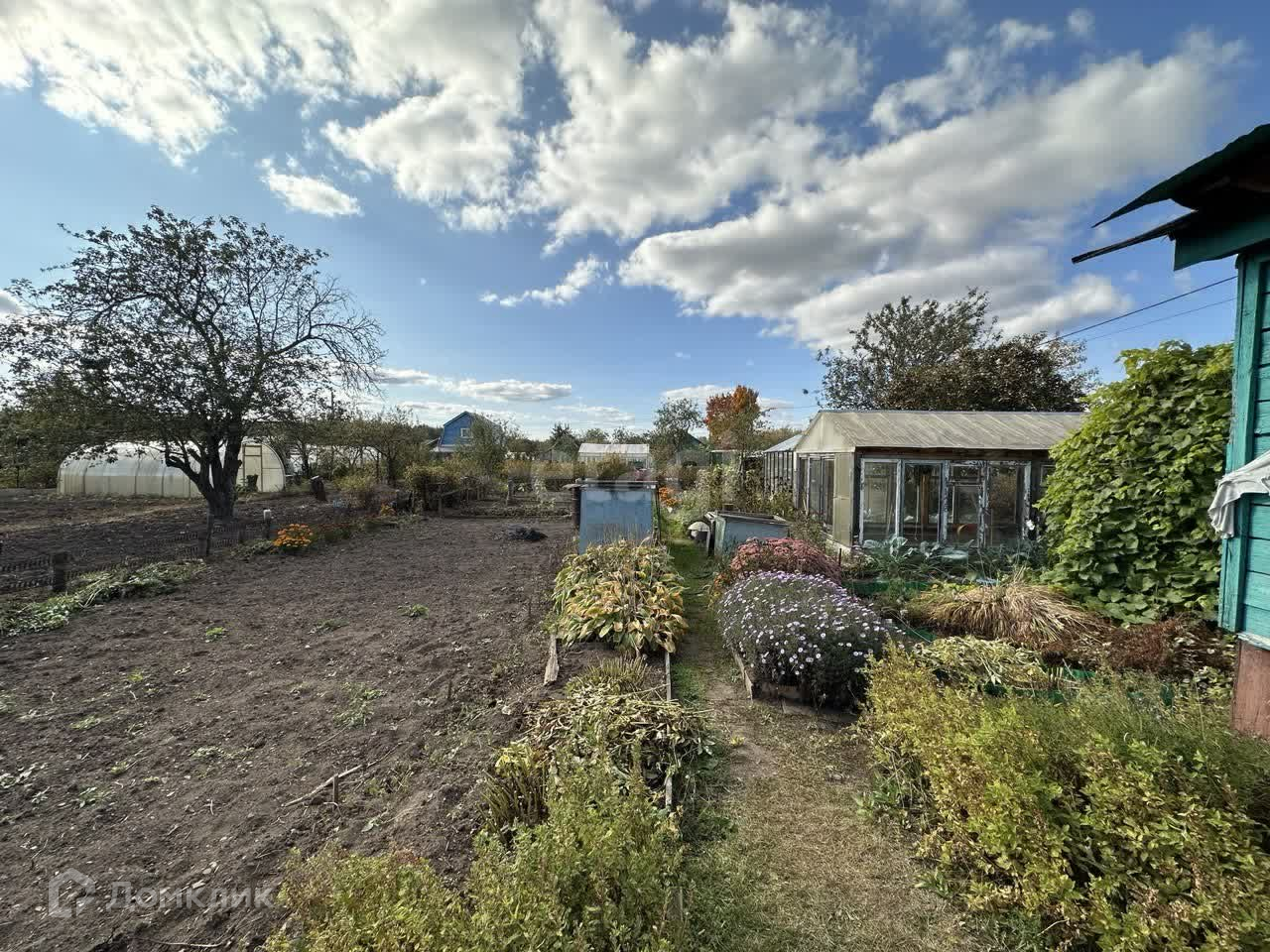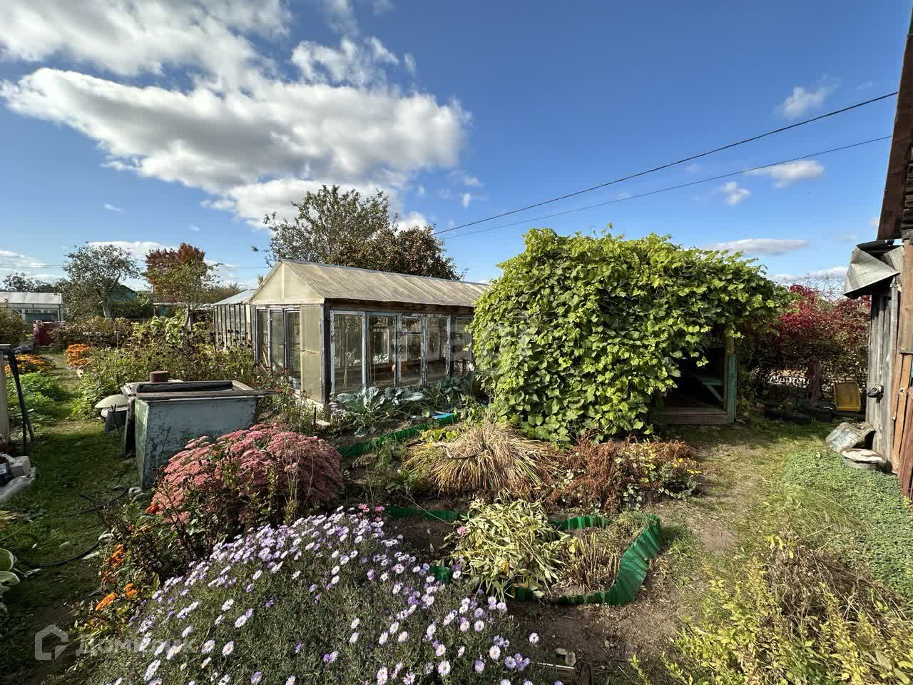 Участок площадью 4 сотки, ухоженный и разработанный. Есть плодово-ягодные насаждения (виноград, клубника, боярышник, яблони), много цветов. На участке вместительная и уютная беседка, 2 теплицы в хорошем состоянии, туалет и хоз.блок.