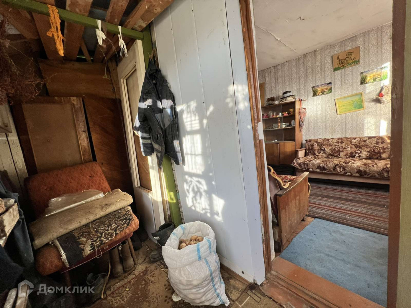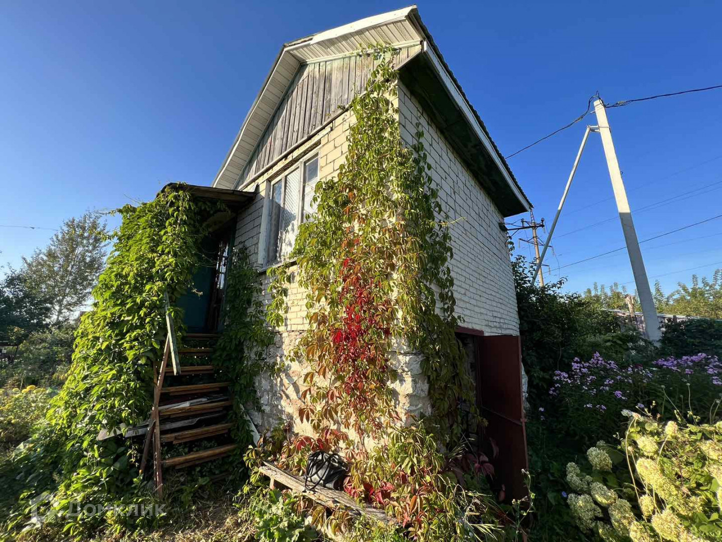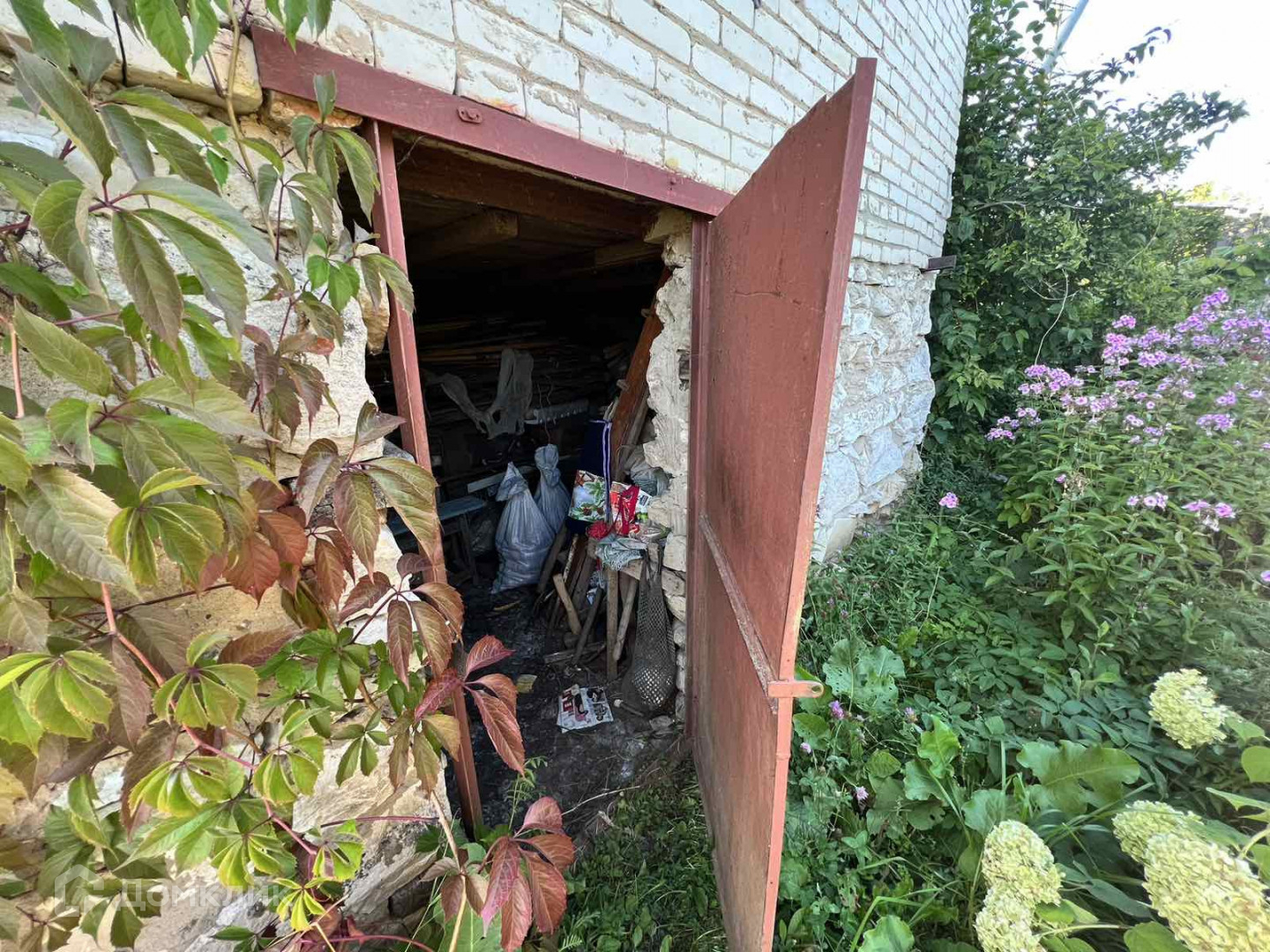 Домик высокий, кирпичный. Первый этаж оборудован для хранения инвентаря и урожая. На втором этаже просторная кухня и прихожая.