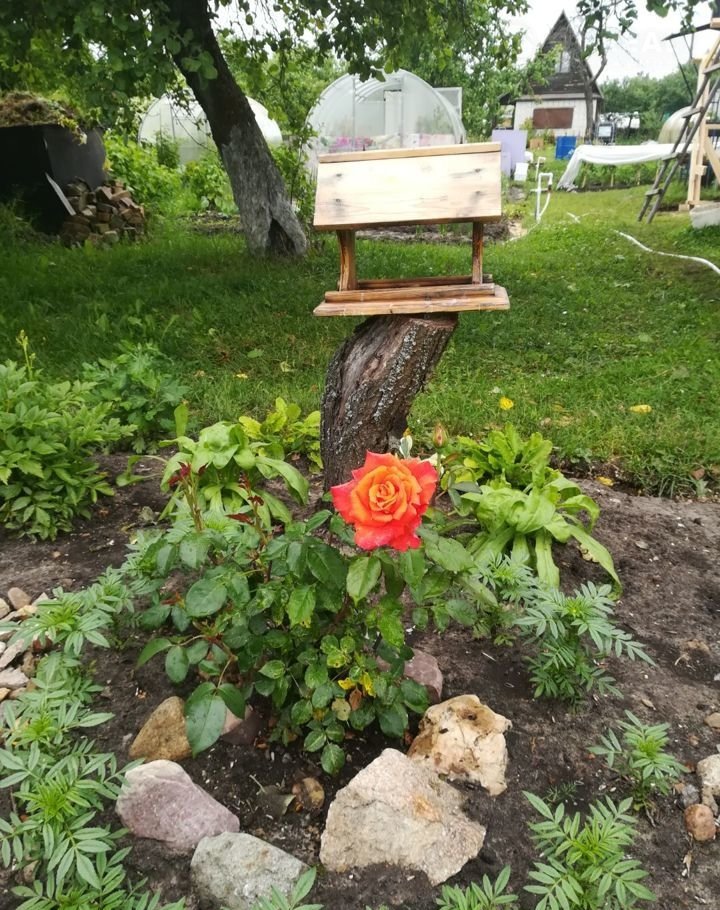 2 теплицы, 3 яблони и хозблок.