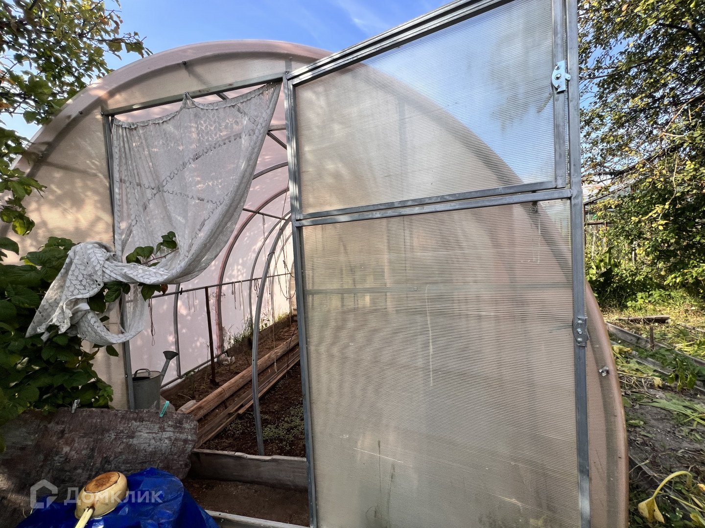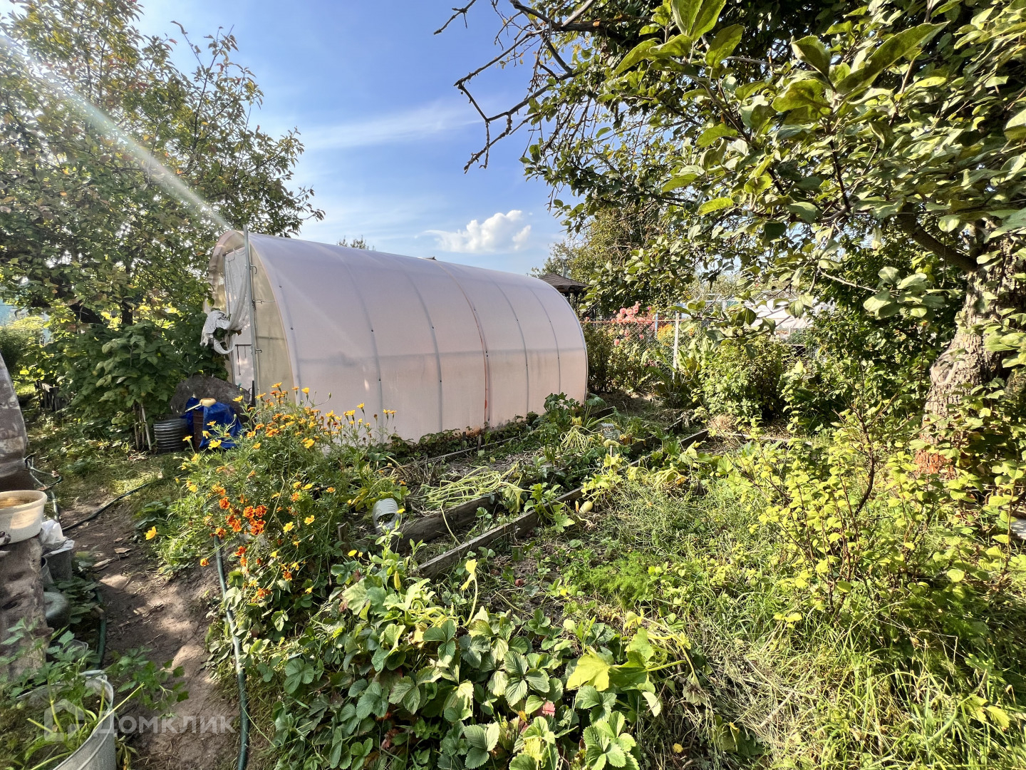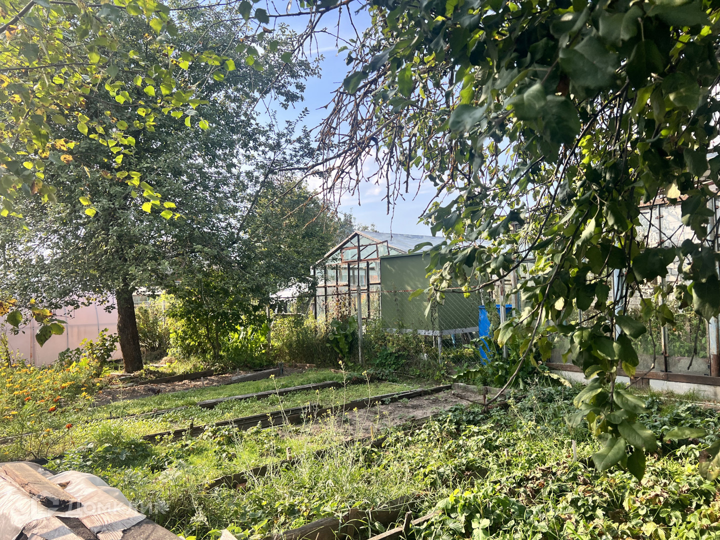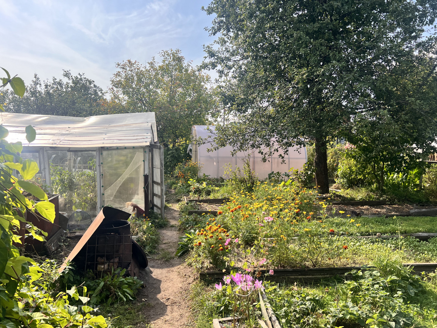 Обихоженный  участок с двумя теплицами и множеством посадок .
