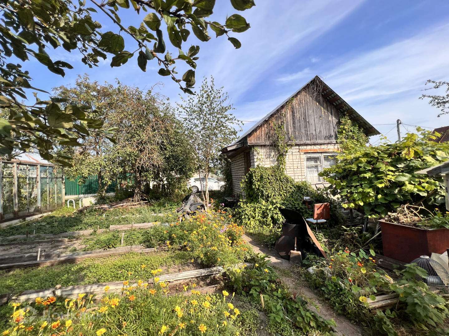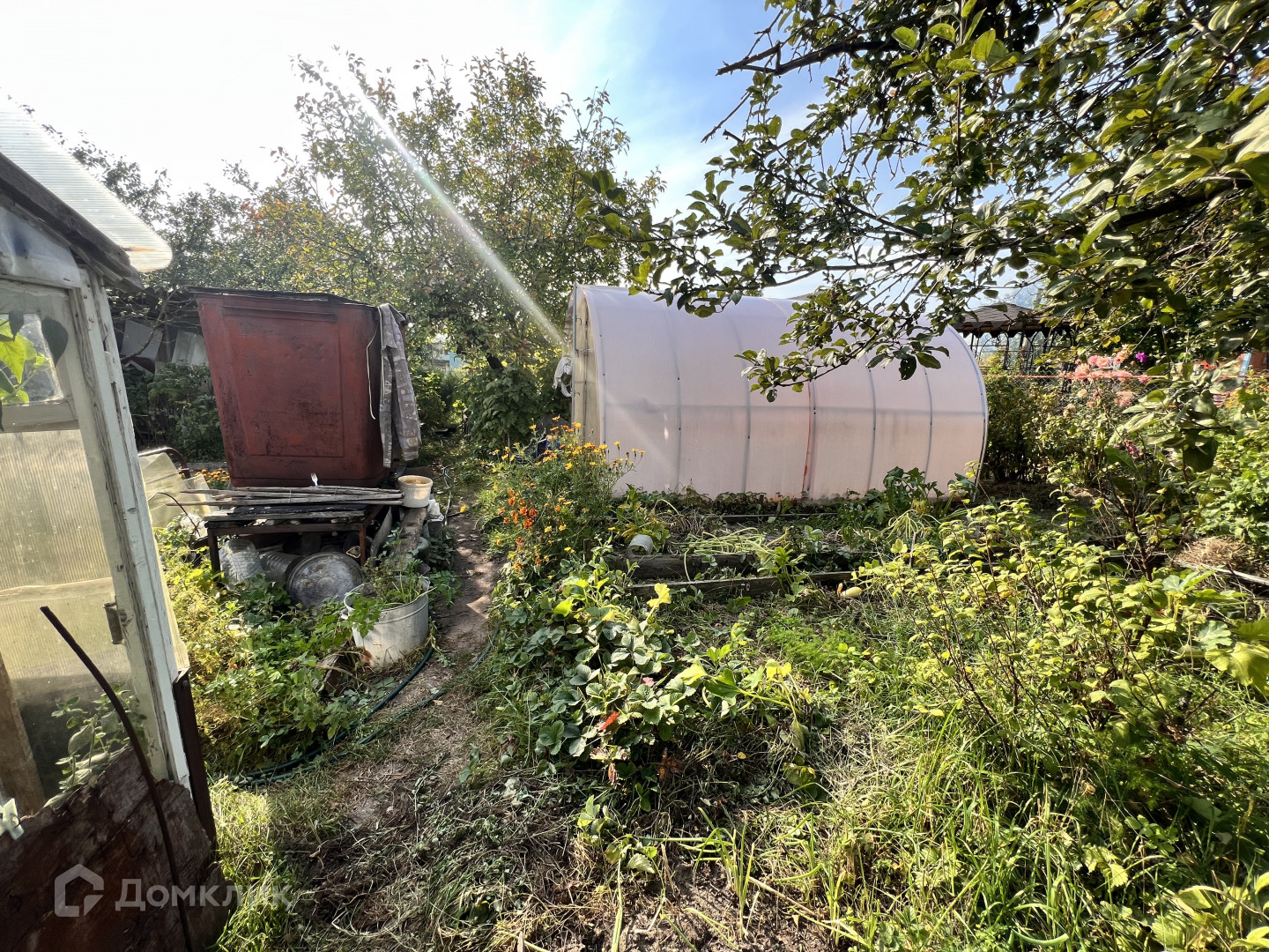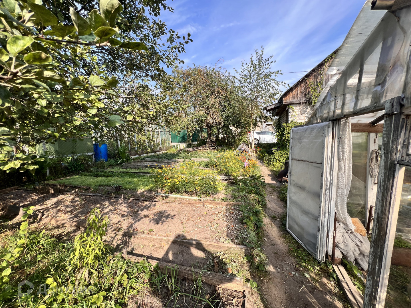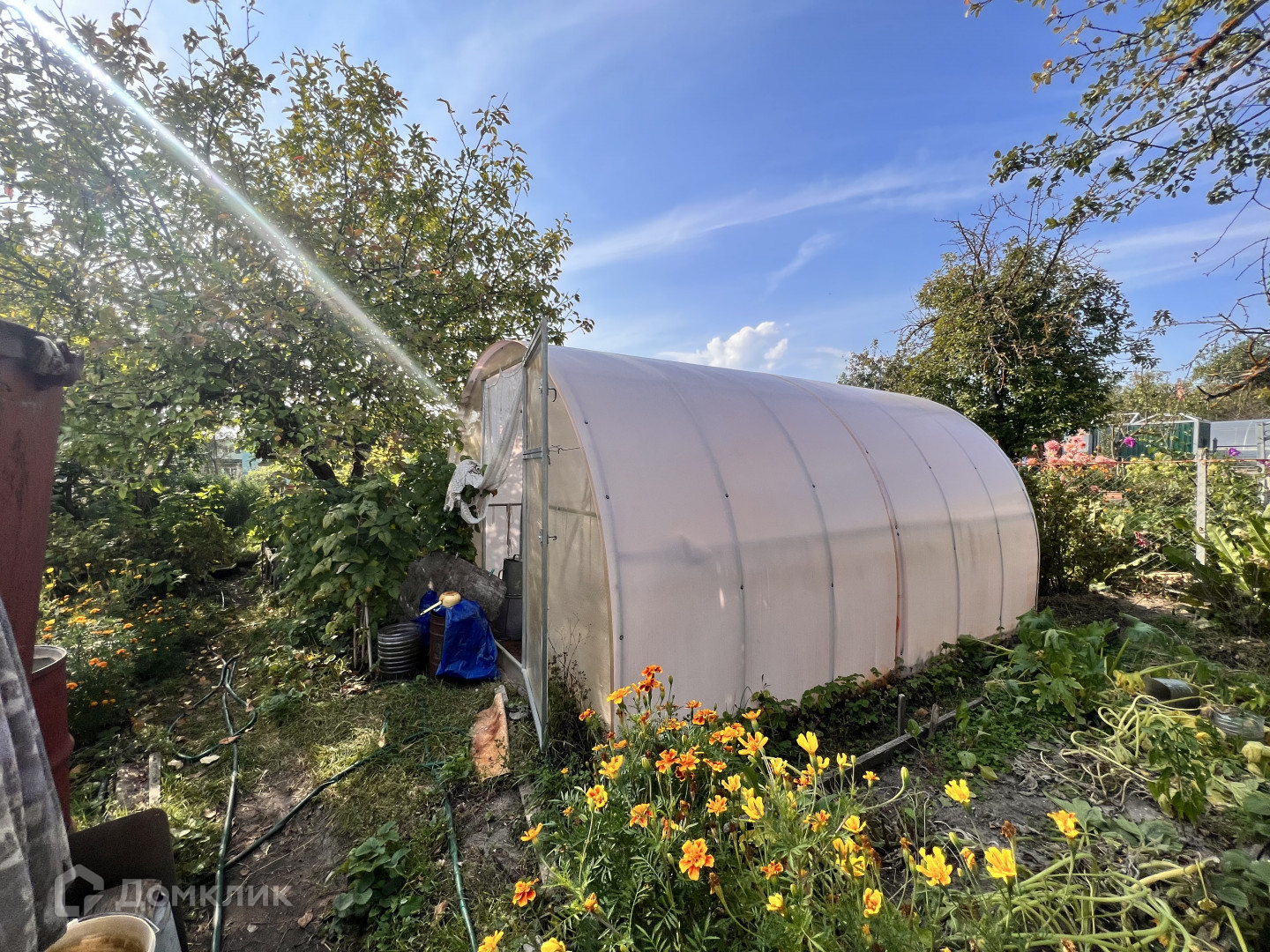 Обихоженный  участок с двумя теплицами и множеством посадок .