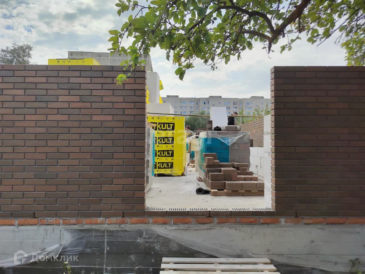 На данный момент дом находится на стадии возведения коробки с крышей и всеми необходимыми коммуникациями.