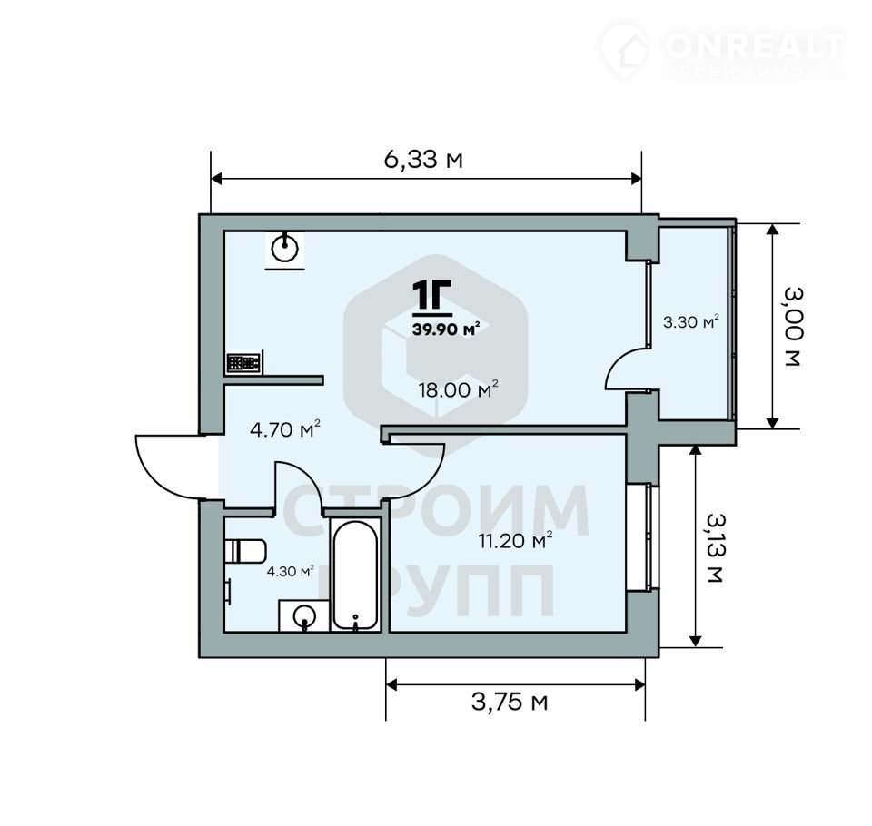 Общая площадь 39.9 м2