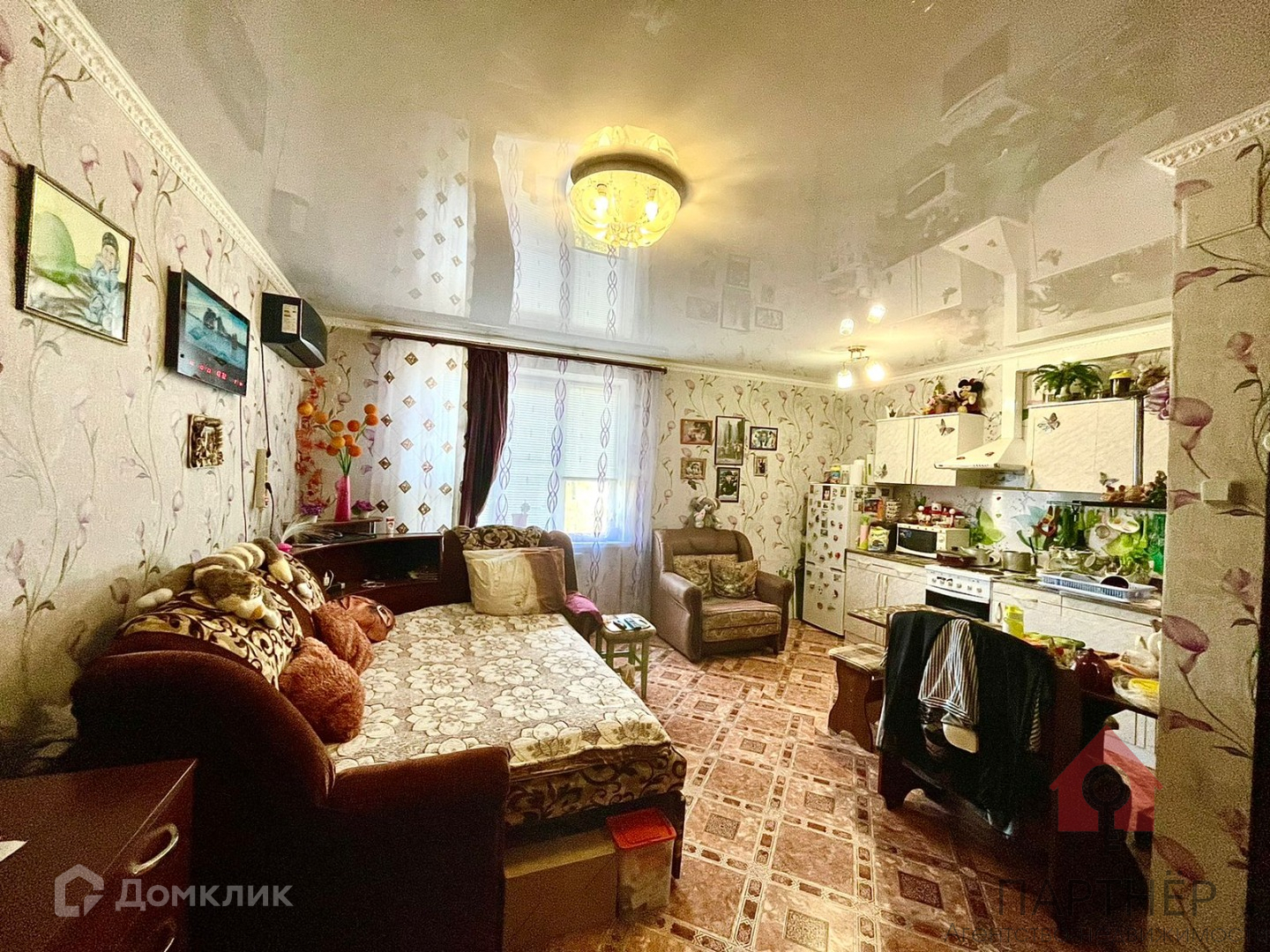Комната - студия с совмещенной кухней.